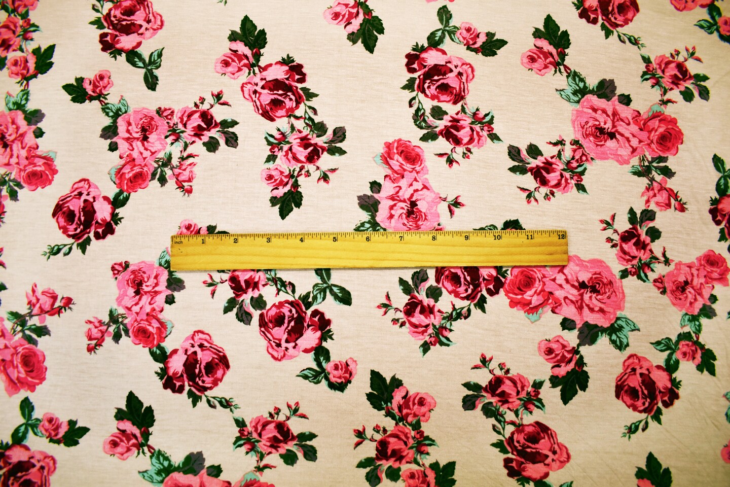 Beige-Multi Rayon Stretch Spandex Floral Print Jersey Knit Fabric By the Yard