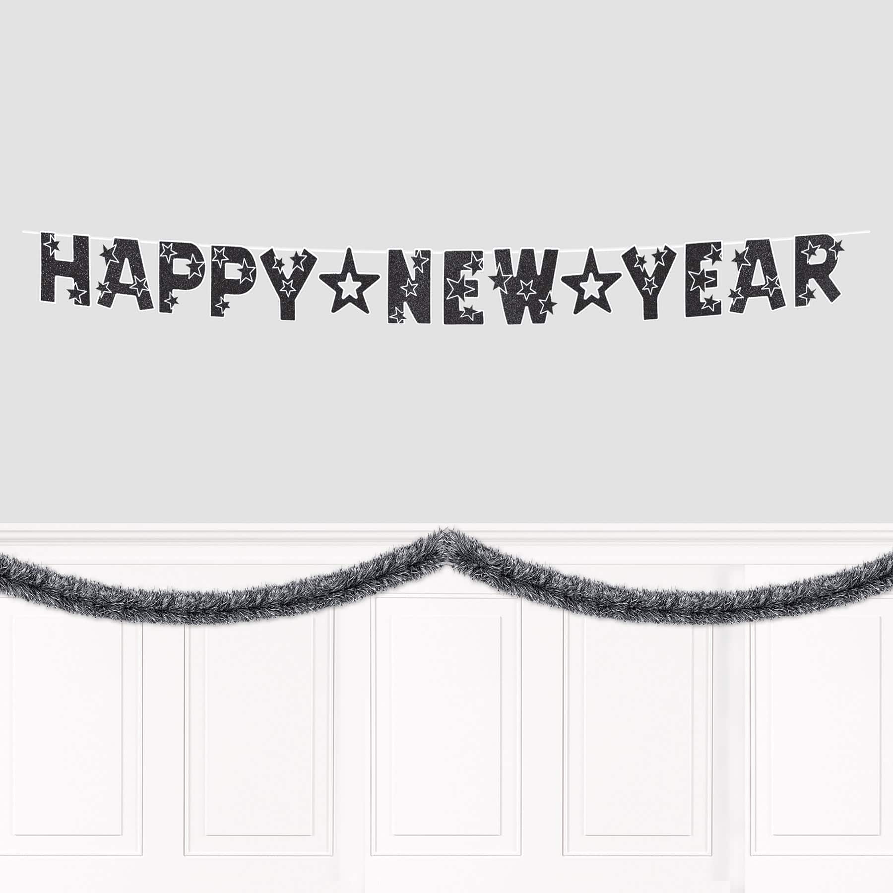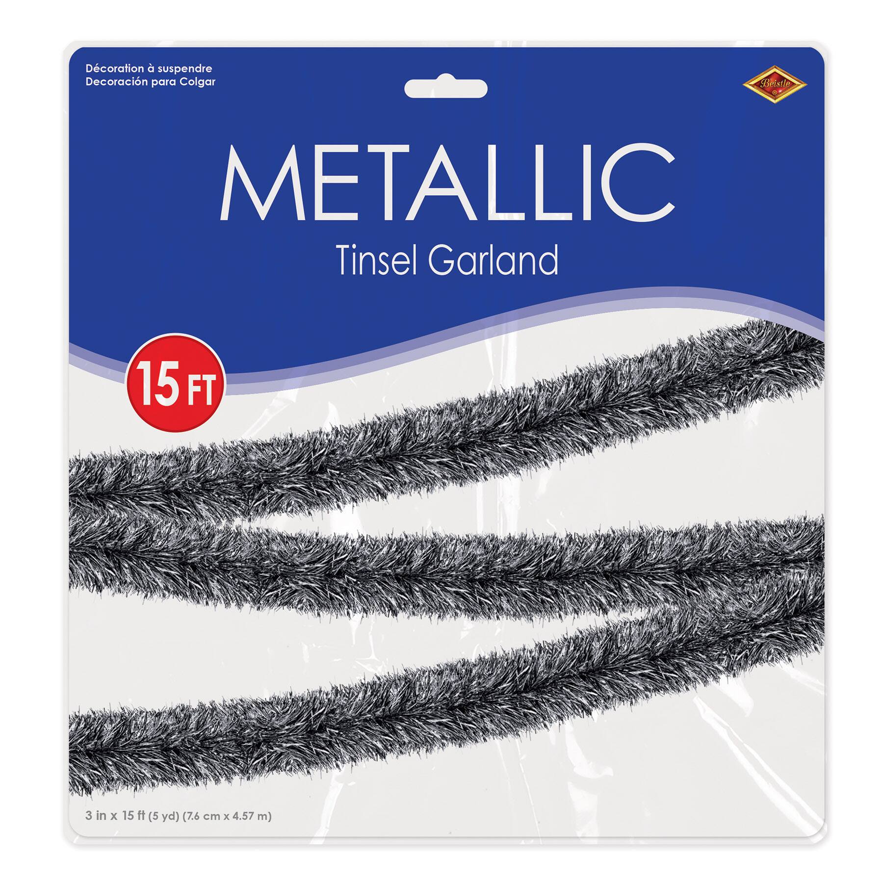 Beistle 15ft. Black & Silver Metallic Tinsel Garland