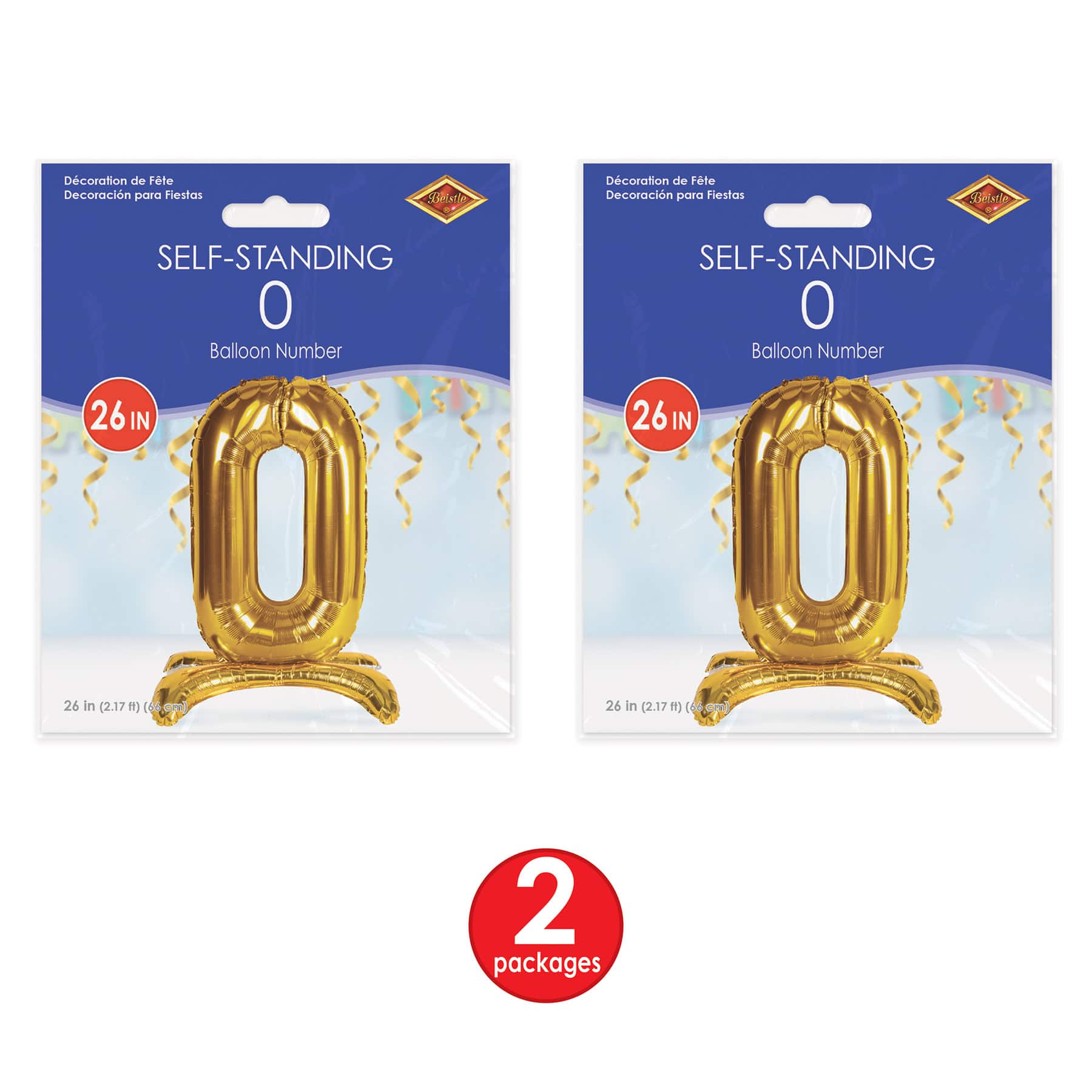 Beistle 26" Gold Self-Standing Foil Balloon Numbers, 2ct.