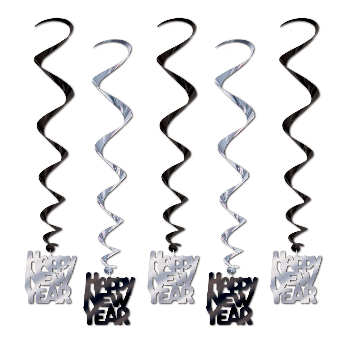 Beistle 33in. Silver and Black Happy New Year Whirls - 6 Pack