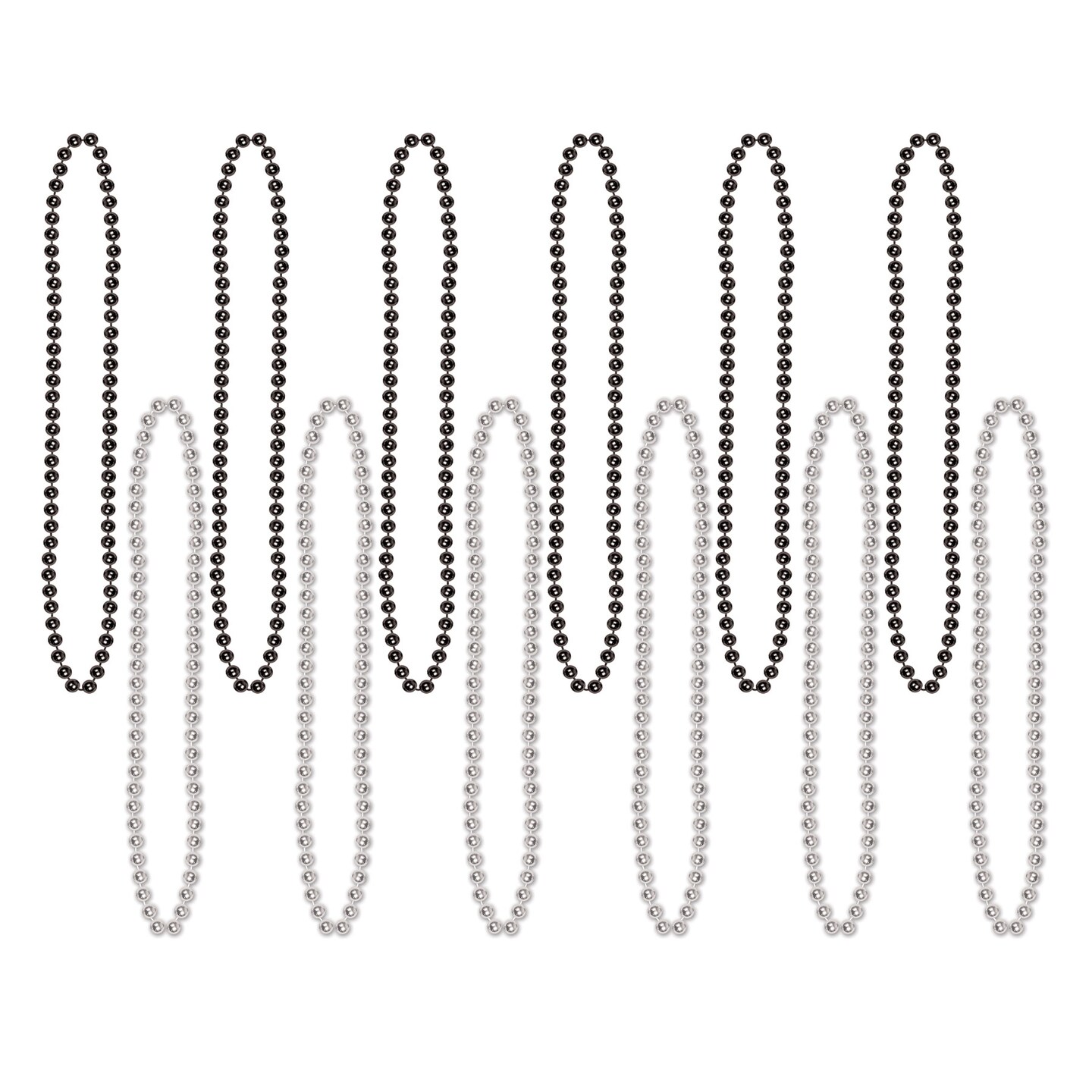 Beistle 7mm x 33in. Small Round Silver and Black Party Beads - 12 Pack