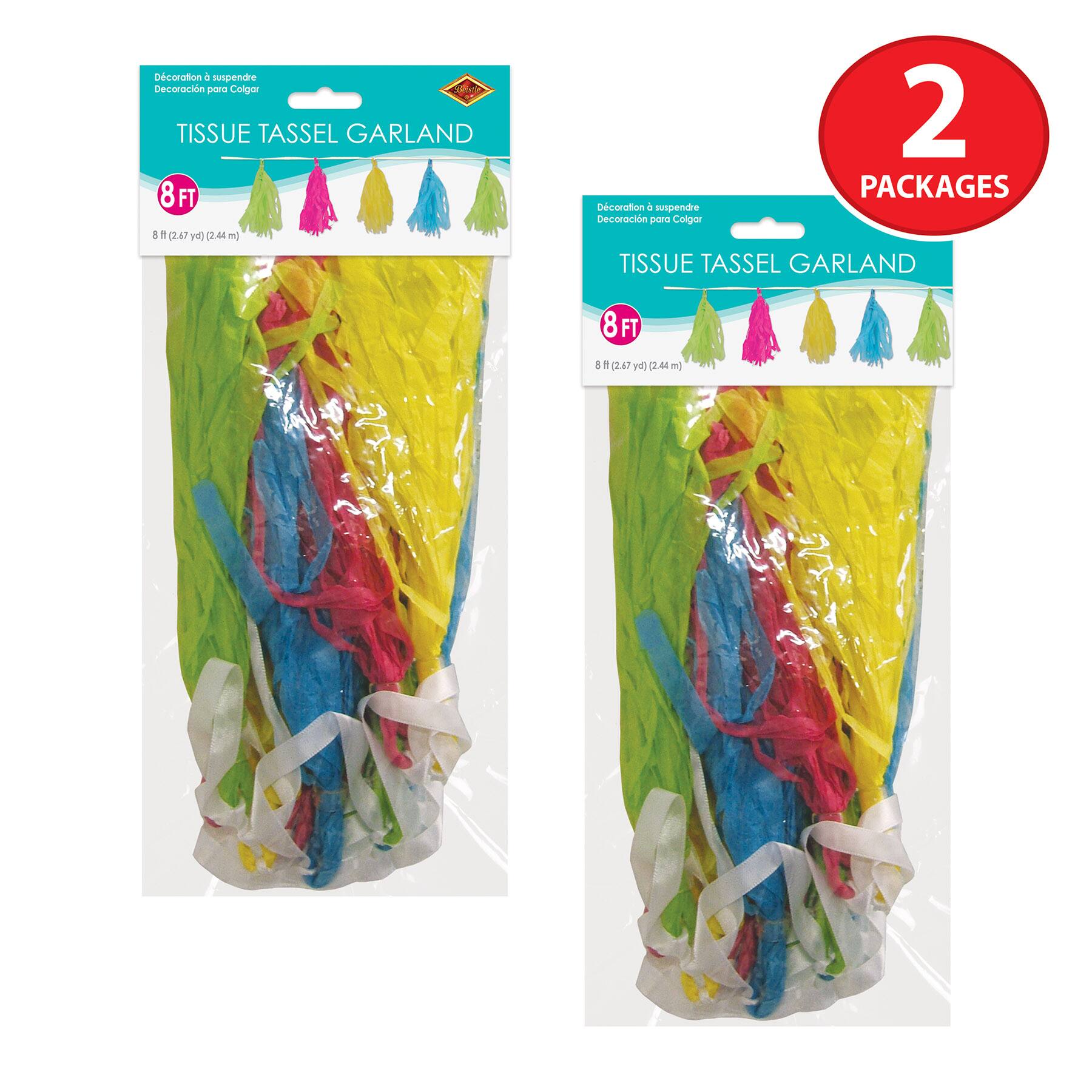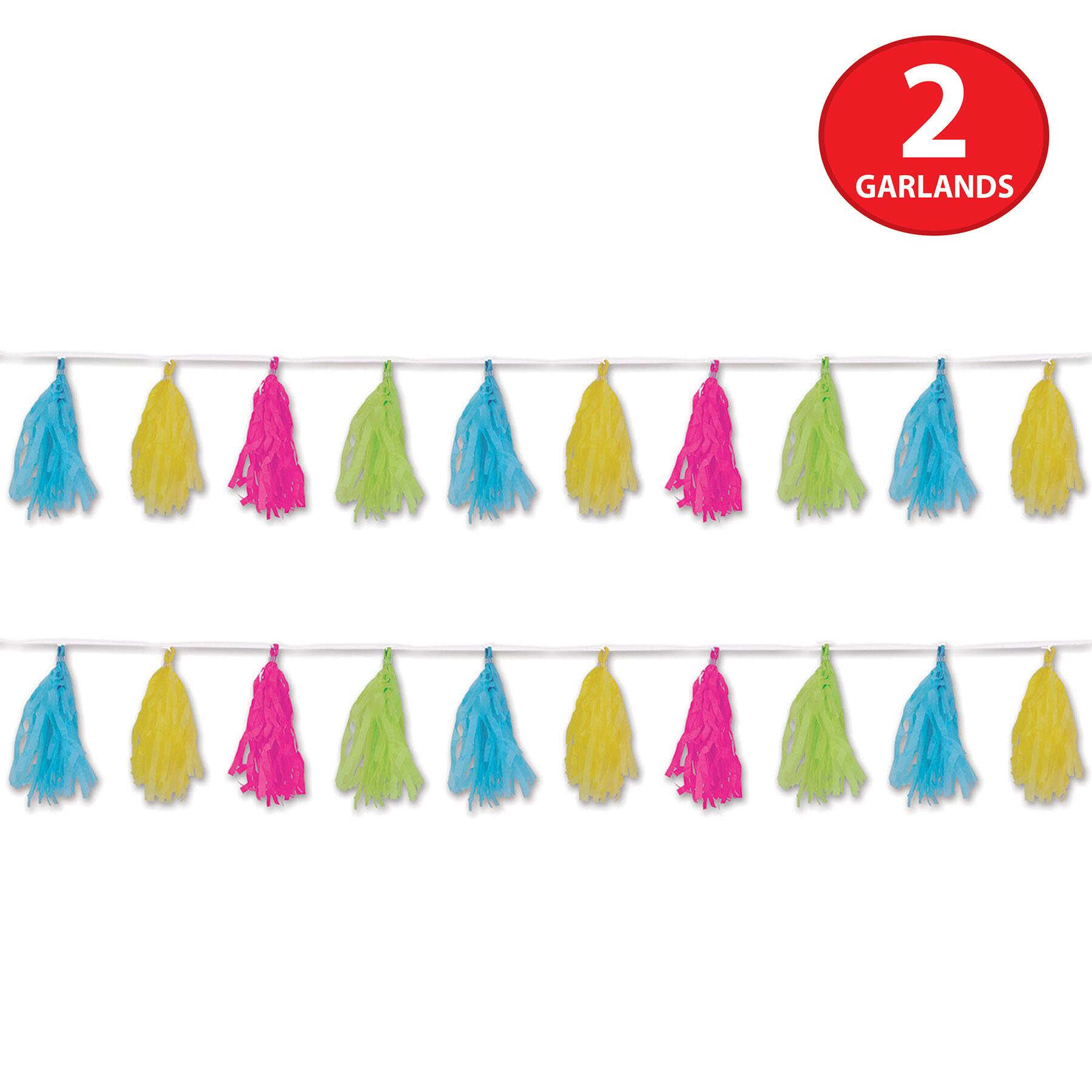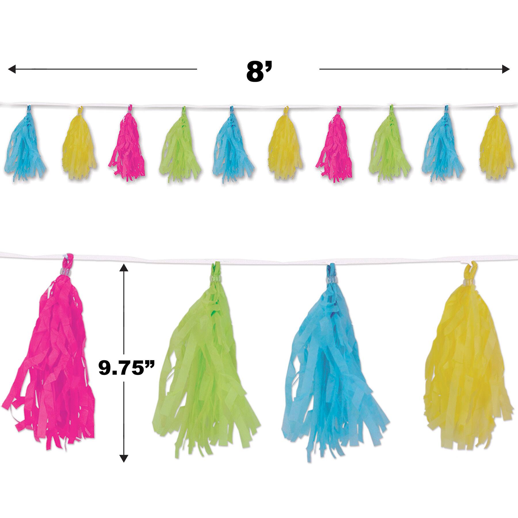 Beistle 8ft. Pink, Green, Turquoise & Yellow Tissue Tassel Garland, 2ct.