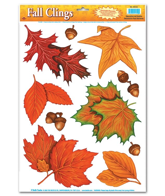 Beistle Club Pack of 120 Autumn Leaves and Acorns Fall Window Clings 17"