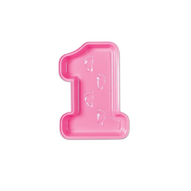 Beistle Club Pack of 24 Pink Baby's 1st Birthday Decorative Tray with Footprints
