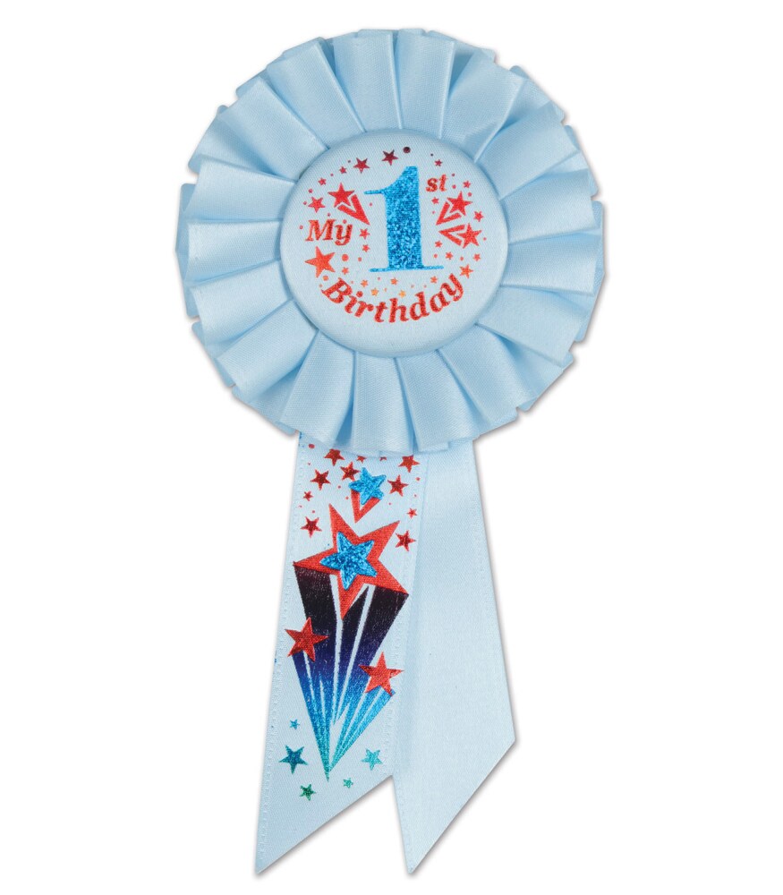Beistle Pack of 6 Blue and Red "My 1st Birthday" Party Celebration Rosette Ribbons 6.5"