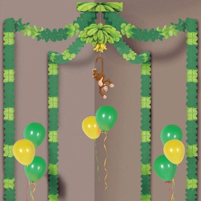 Beistle Pack of 6 Green and Brown Jungle Monkey Party Canopy Decorating Kit 20' x 20'