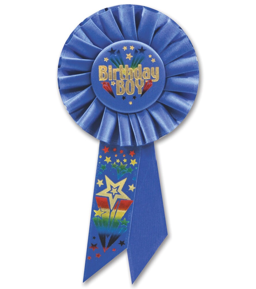 Beistle Pack of 6 Royal Blue "Birthday Boy" Party Celebration Rosette Ribbons 6.5"