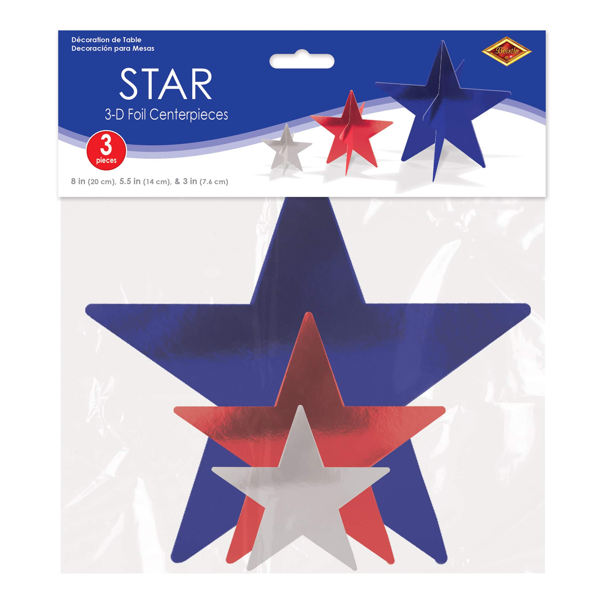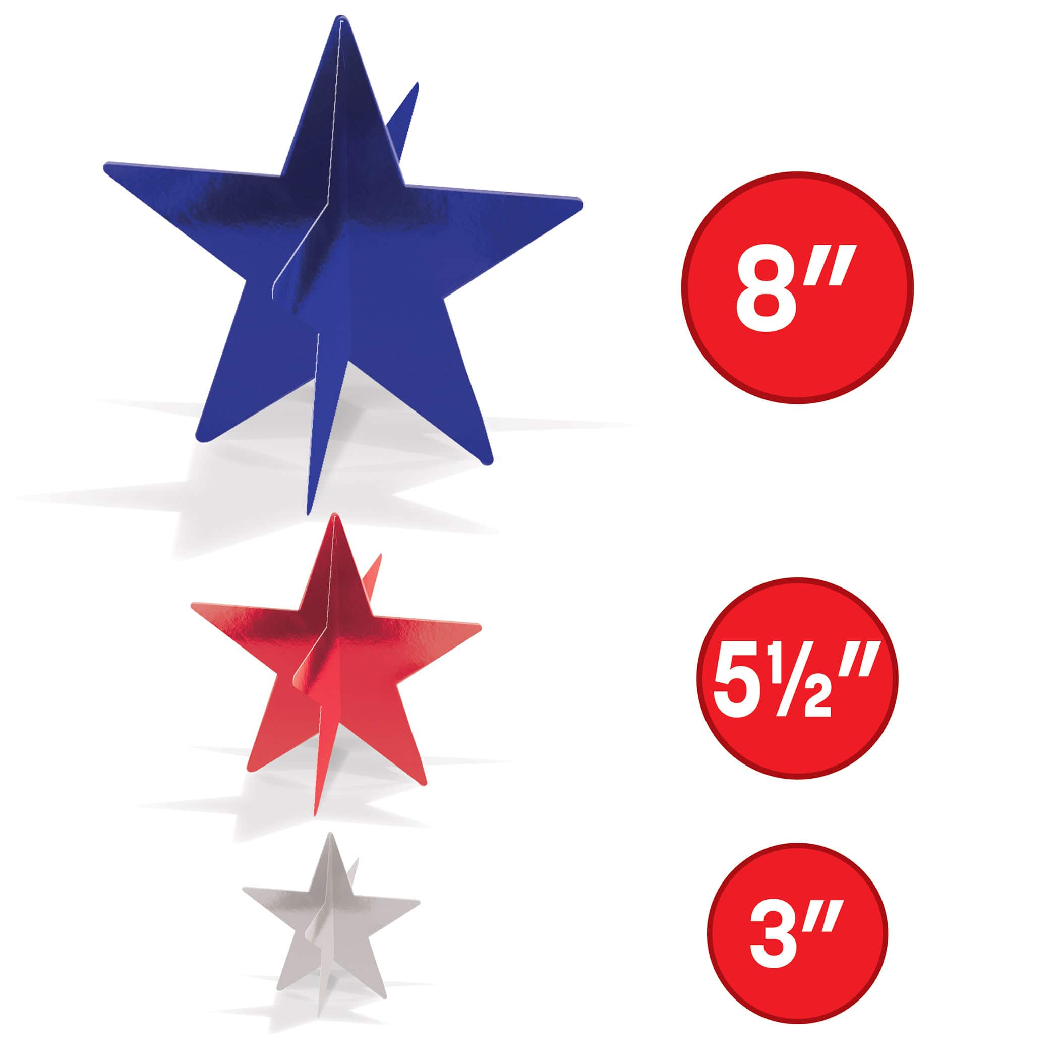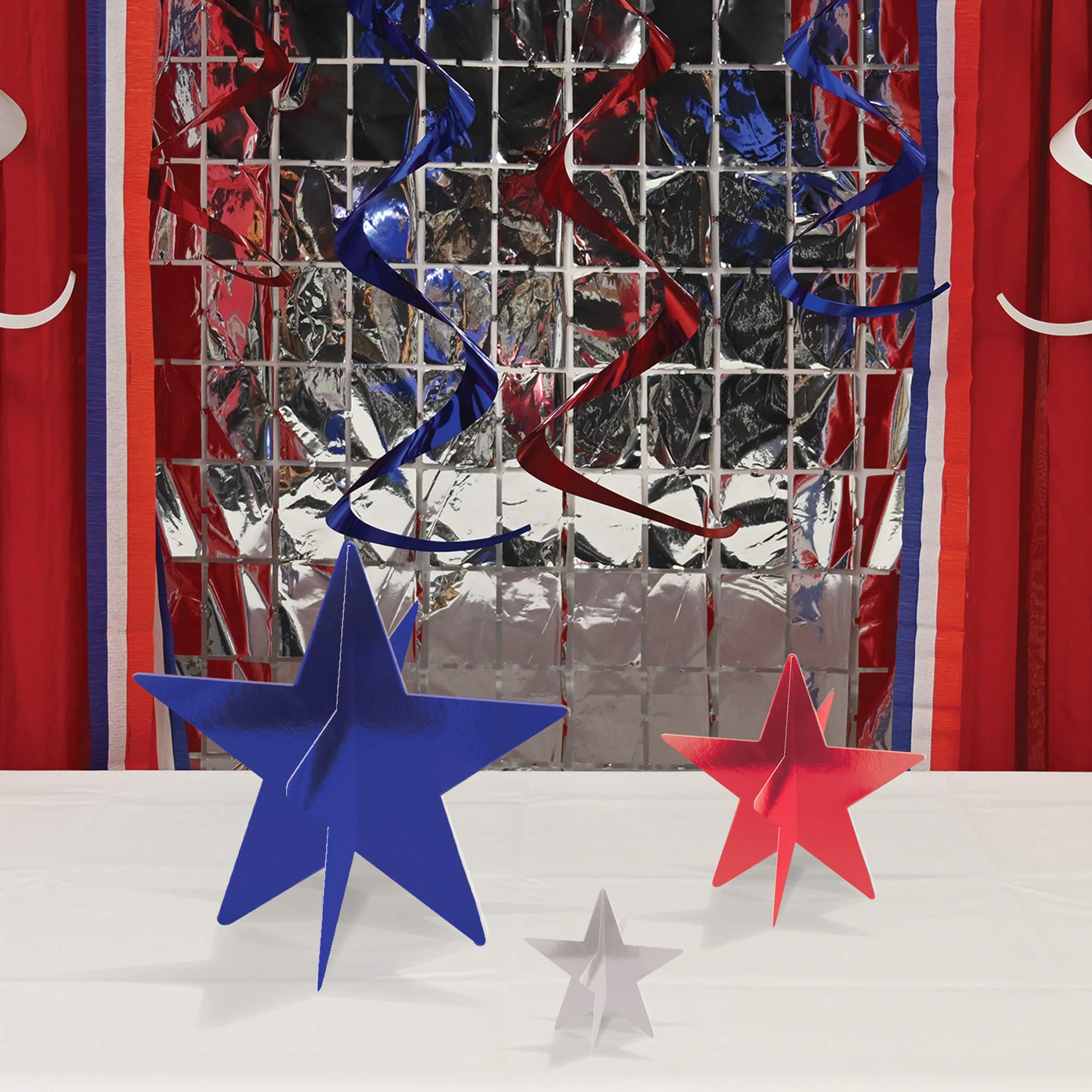 Beistle Red, Silver & Blue 3D Foil Star Centerpiece Packs, 2ct.