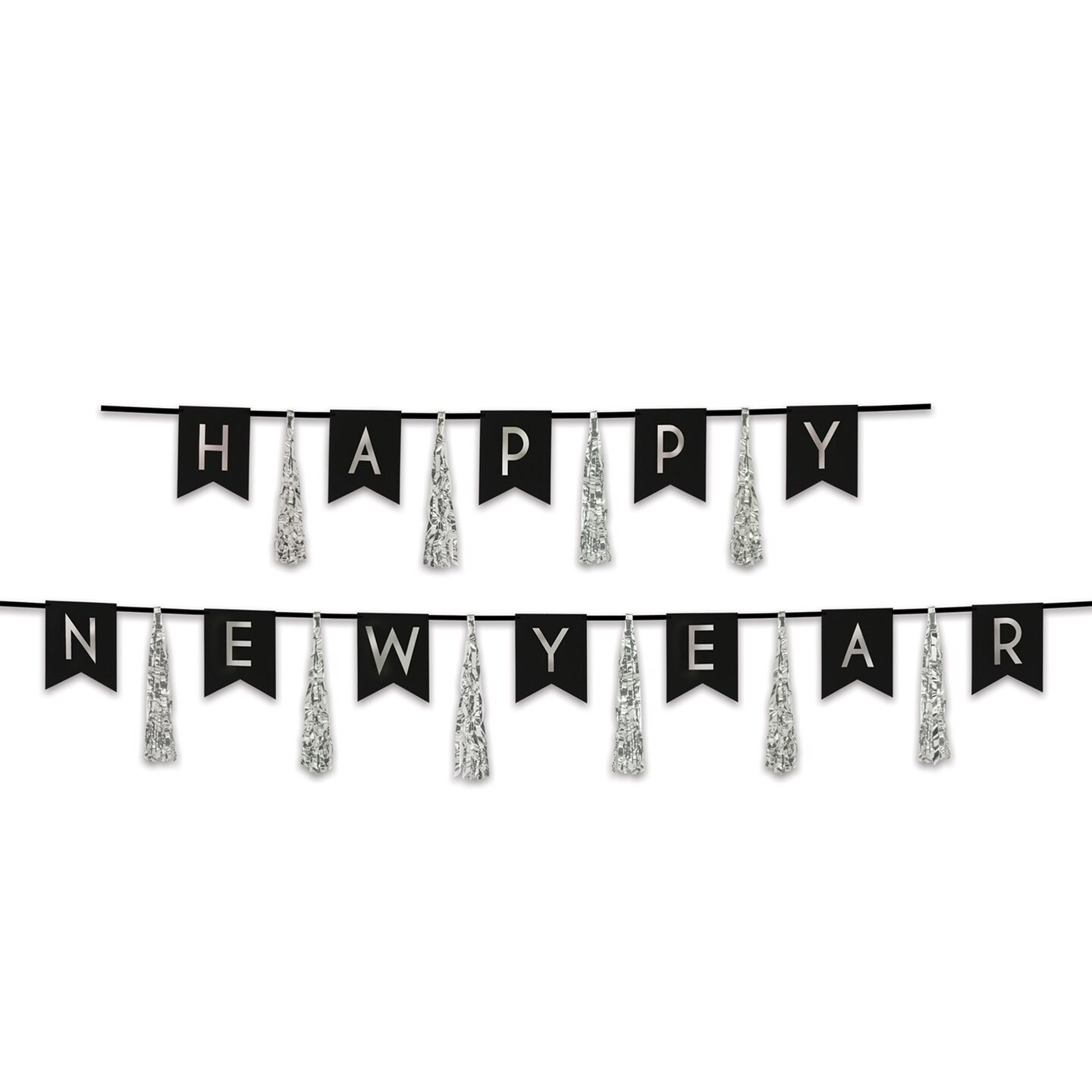 Beistle Set of 24 Black and Silver Happy New Year Tassel Streamer -13"
