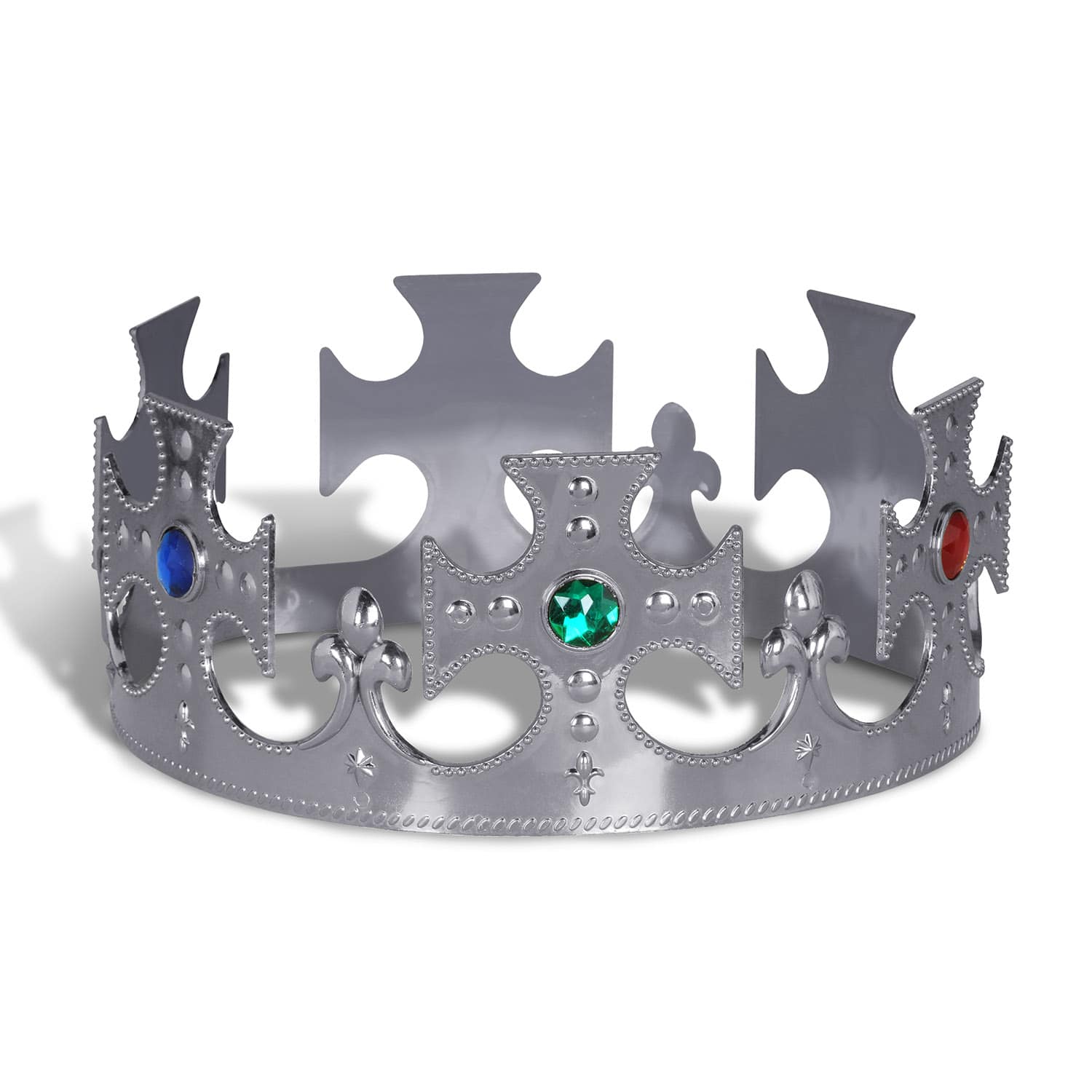 Beistle Silver Plastic Jeweled King's Crowns, 2ct.