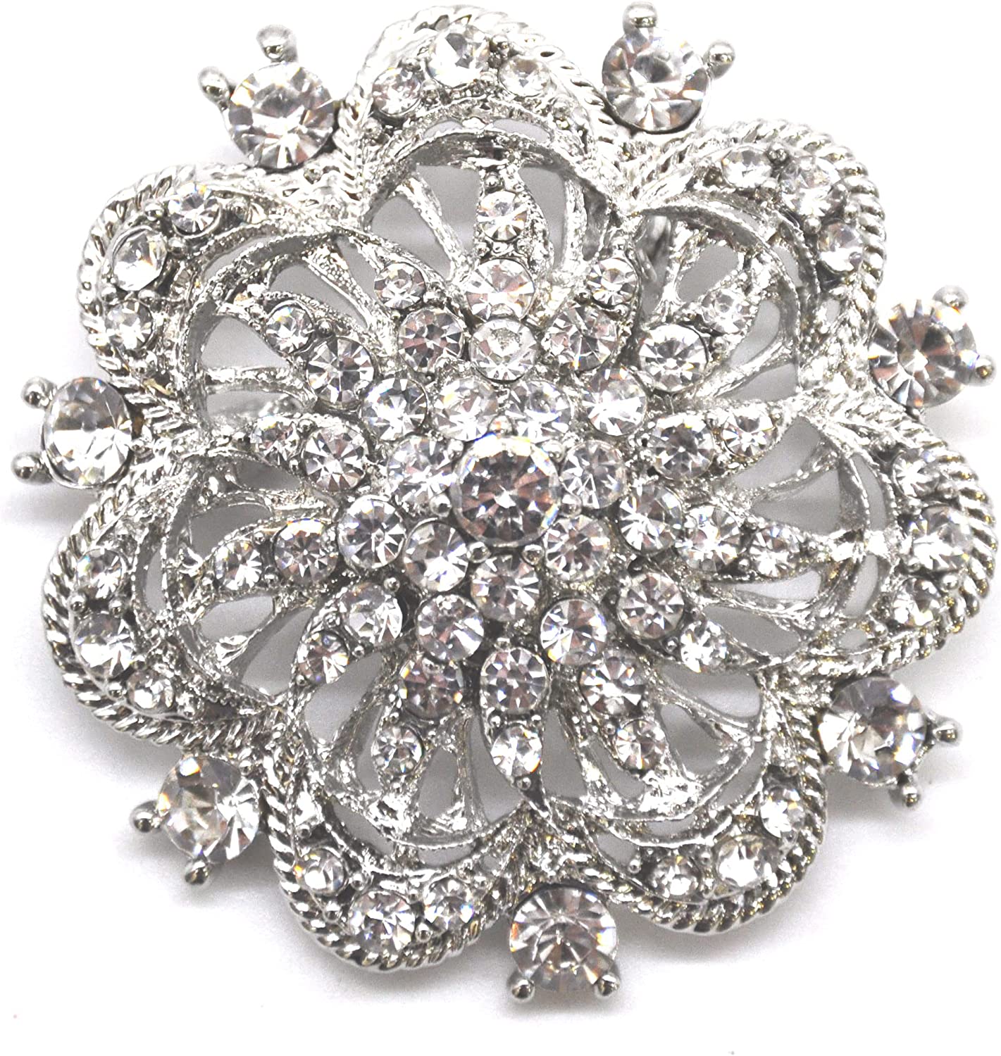 Belagio Rhinestone Brooch, 2" Diameter, 1 Piece, Royal Flower, Silver/Crystal