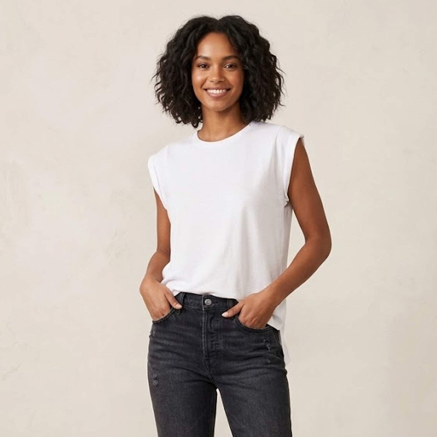 BELLA + CANVAS® Women’s Flowy Rolled Cuffs Muscle T-Shirt Relaxed Fit Sleeveless Top for Casual Wear