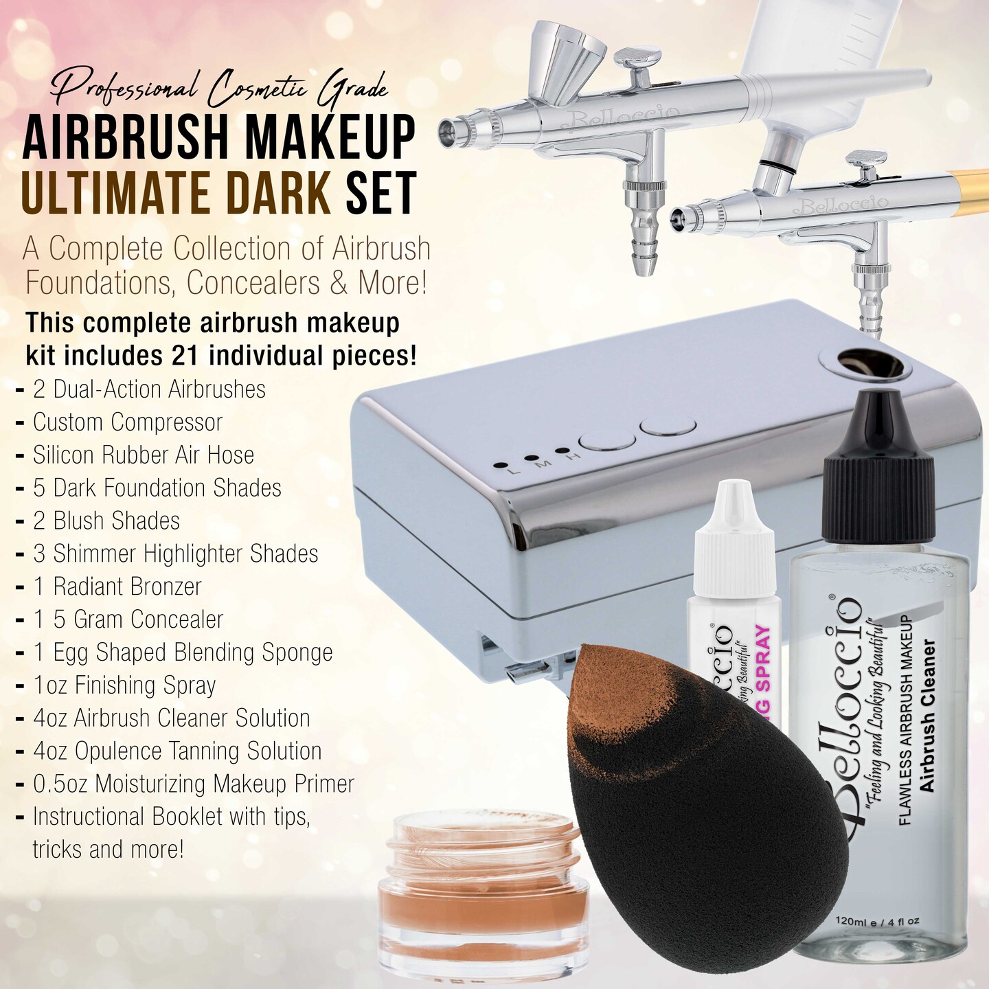 Belloccio Ultimate Airbrush Makeup & Spray Tanning System; Makeup & Tanning Airbrushes, Dark Shade Foundations, Blushes & Tanning Solution