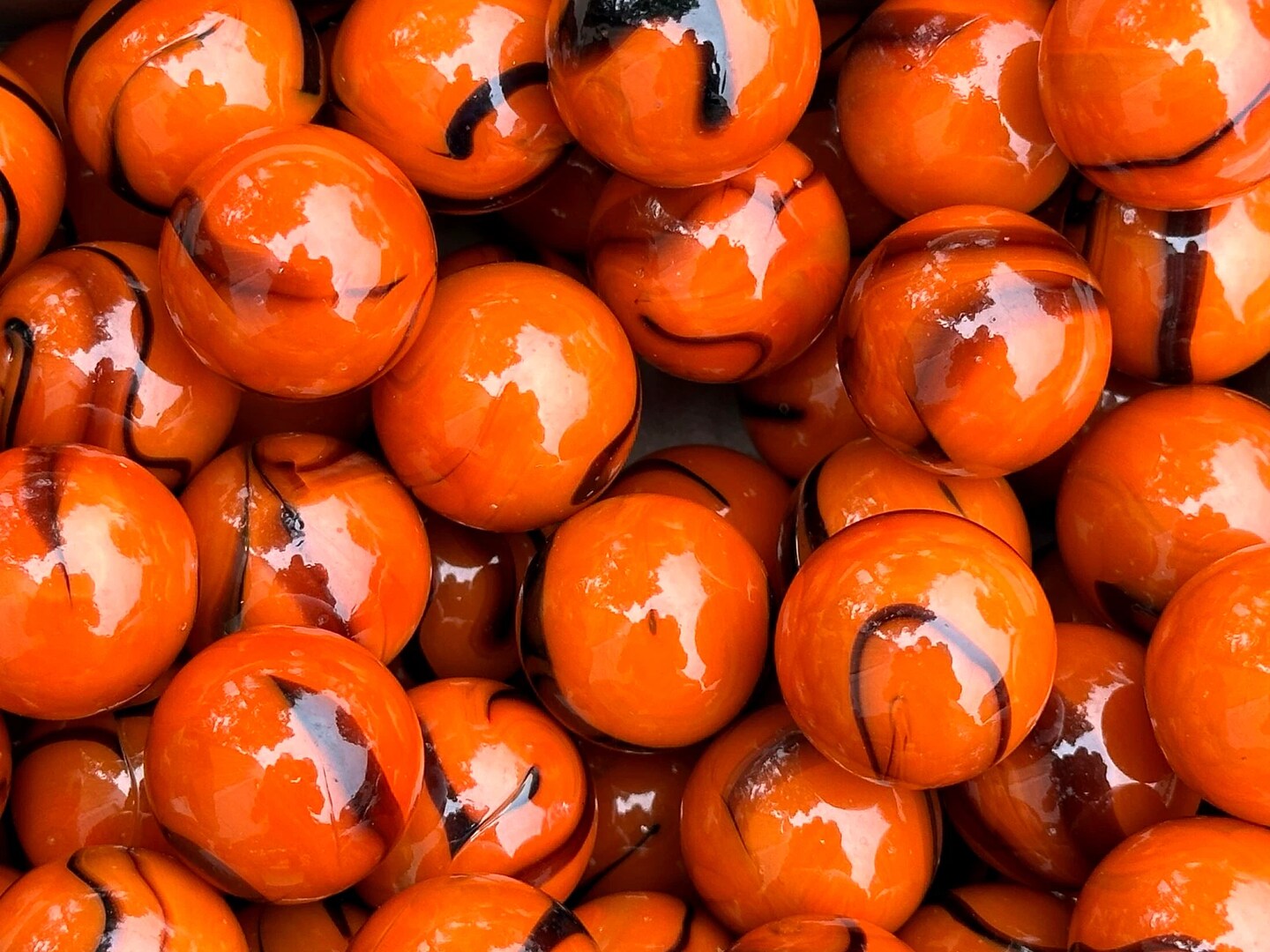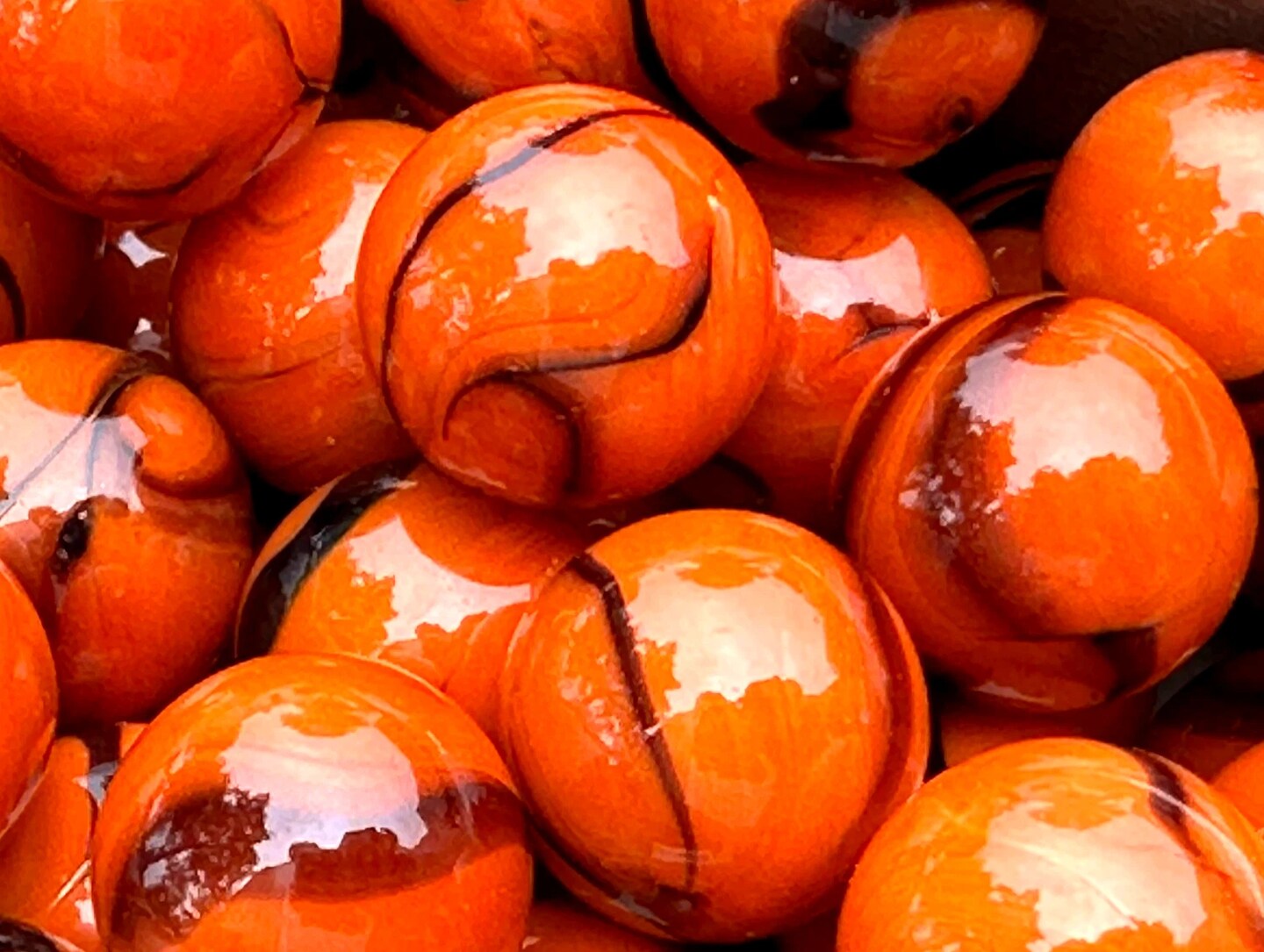 BENGAL TIGER Orange/Black Swirl Glass Marbles 22mm (7/8 inch) SHOOTER Taw (Lot of 10)