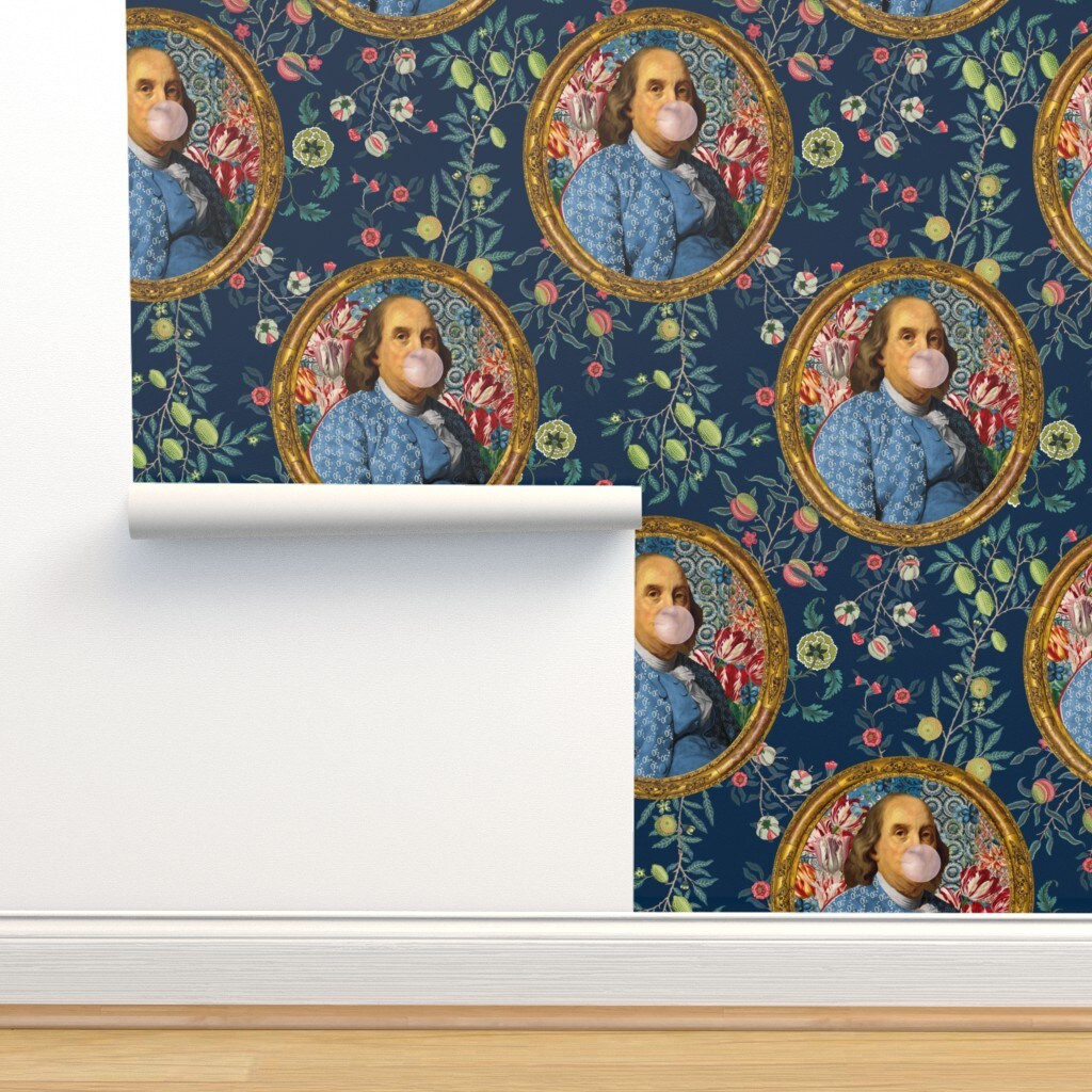 Benjamin Franklin Botanical Whimsical Historical Portrait Custom Removable Wallpaper by Spoonflower Peel & Stick Wallpaper 2FT Wide