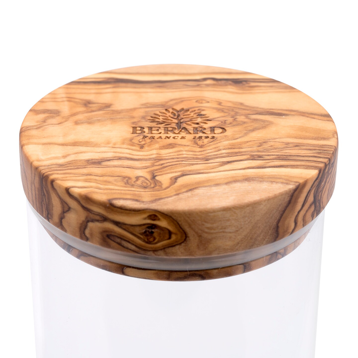 Berard Glass Storage Jar With Olive Wood Lid, 50-ounce