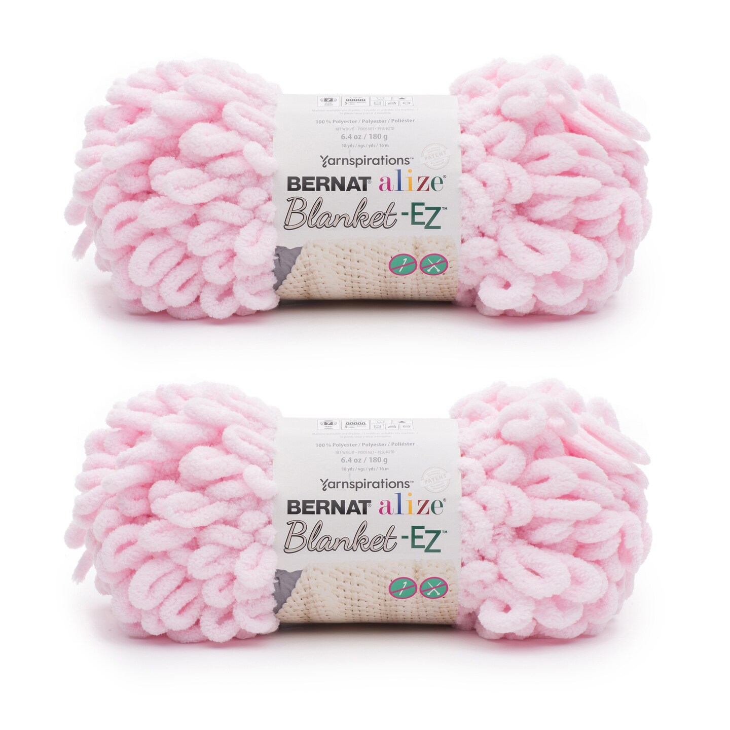 Bernat Alize Blanket Powder Pink Yarn - 2 Pack of 180g/6.4oz - Polyester - 7 Jumbo - 18 Yards - Knitting/Crochet