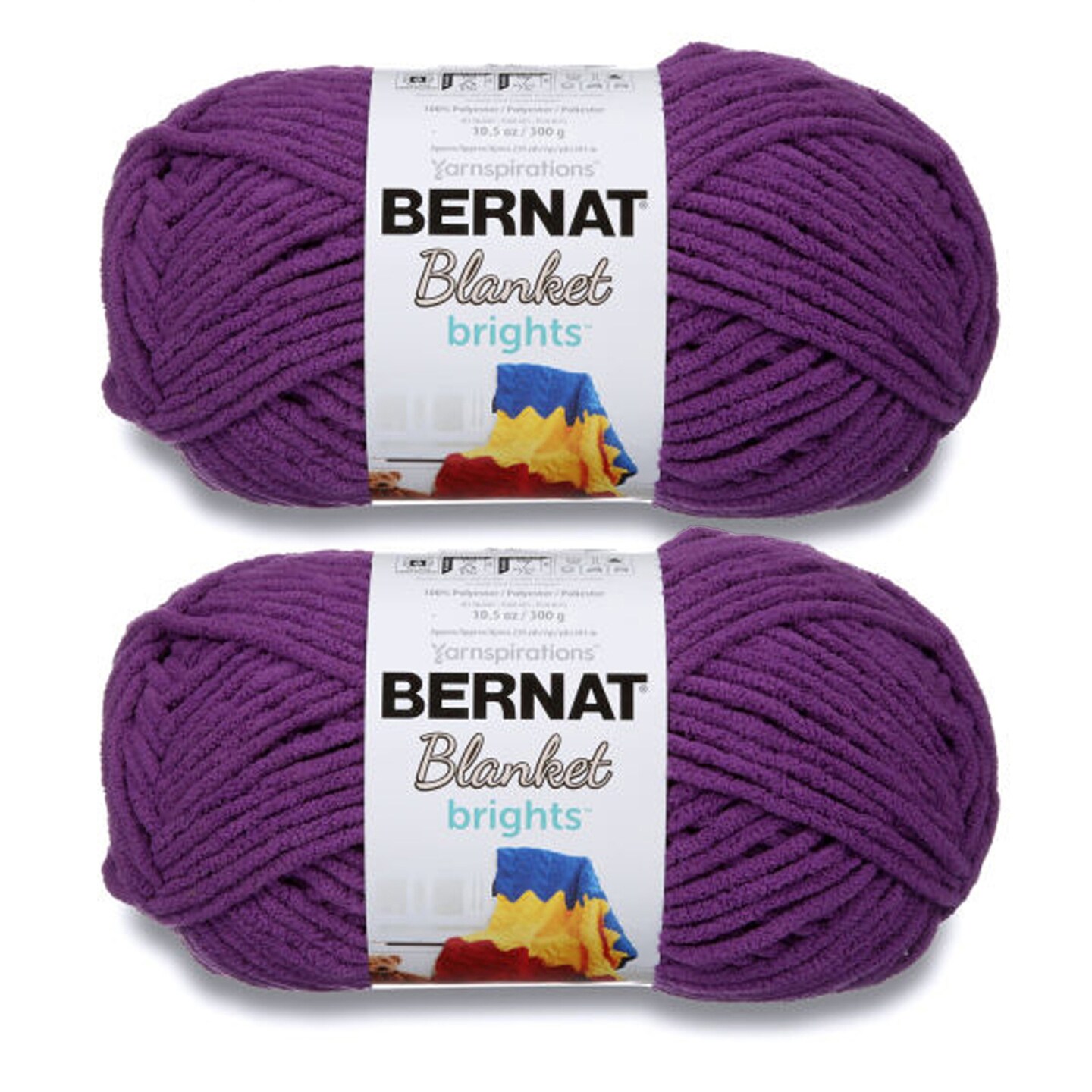 Bernat Blanket Brights Pow Purple Yarn - 2 Pack of 300g/10.5oz - Polyester - 6 Super Bulky - 220 Yards - Knitting/Crochet