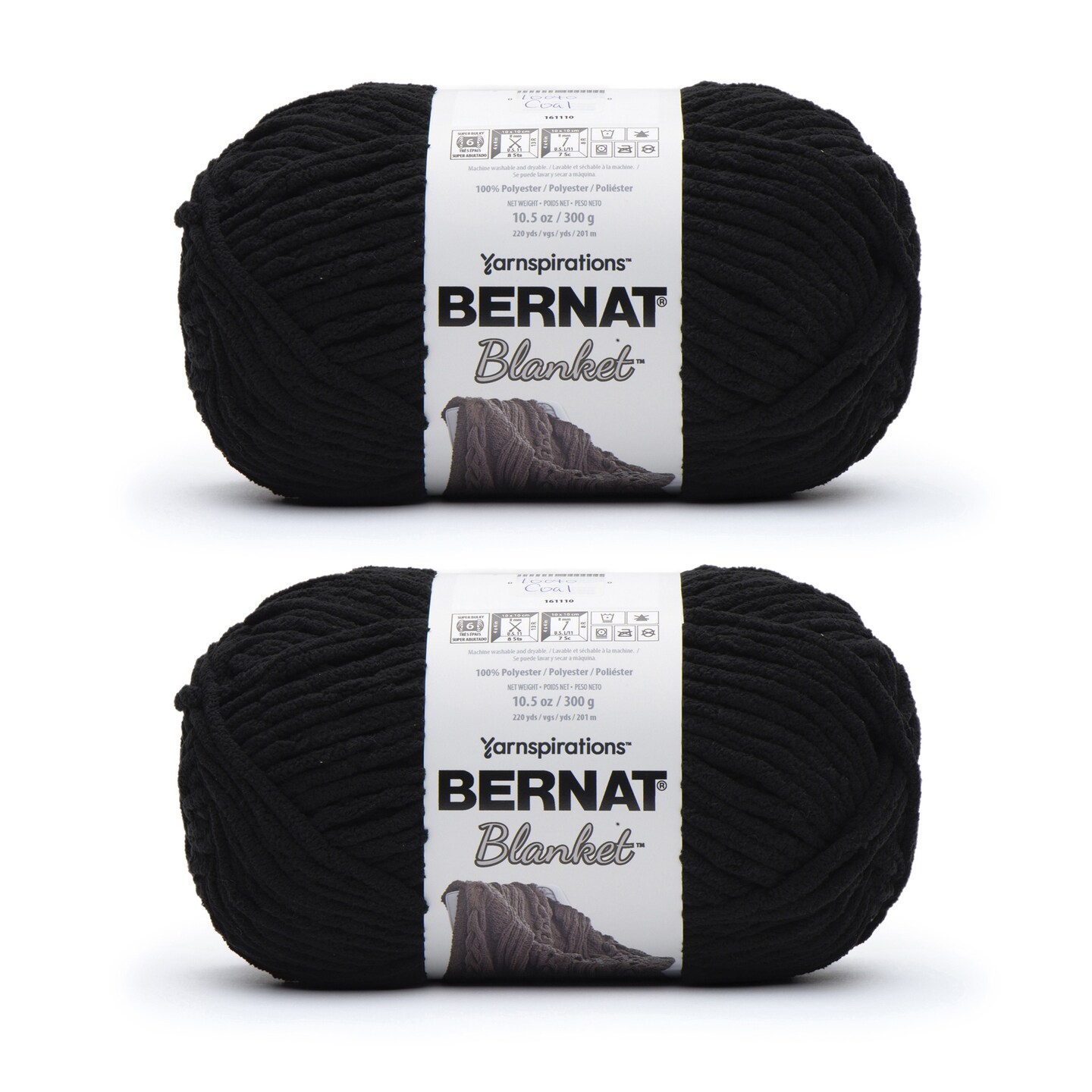 Bernat Blanket Coal Yarn - 2 Pack of 300g/10.5oz - Polyester - 6 Super Bulky - 220 Yards - Knitting/Crochet