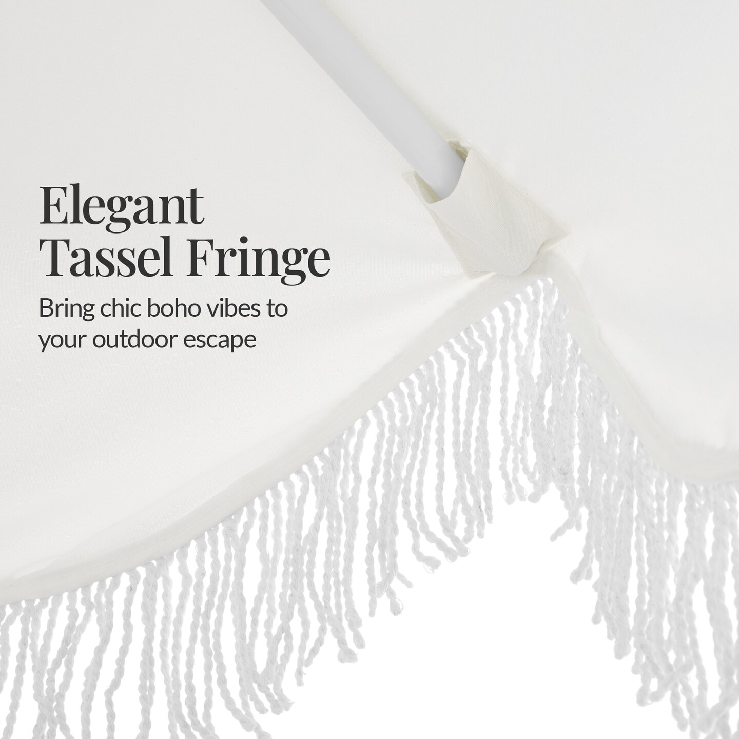 Best Choice 9ft Fringe Market Umbrella – Boho Patio Sunshade w/ Tilt, UPF50+, Steel Pole for Table, Pool, Deck