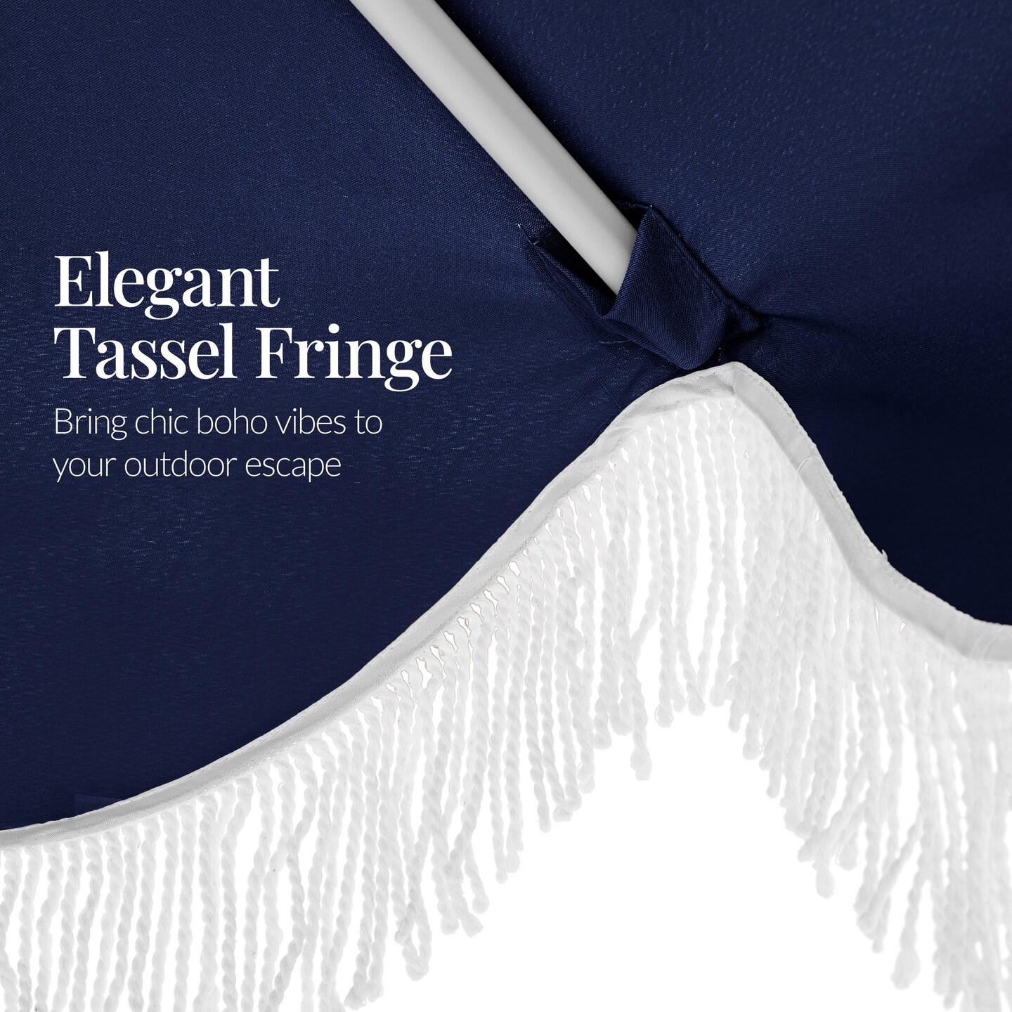 Best Choice 9ft Fringe Market Umbrella – Boho Patio Sunshade w/ Tilt, UPF50+, Steel Pole for Table, Pool, Deck