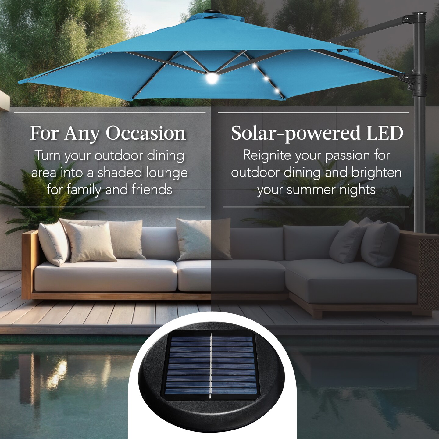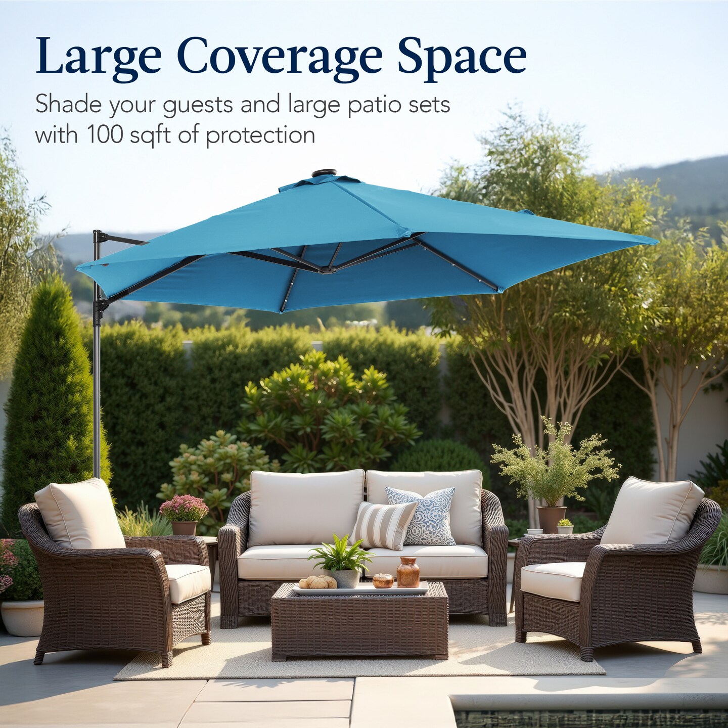 Best Choice Products 10ft 360° Rotating Cantilever Easy Auto Open Patio Umbrella w/ Solar LED Lights