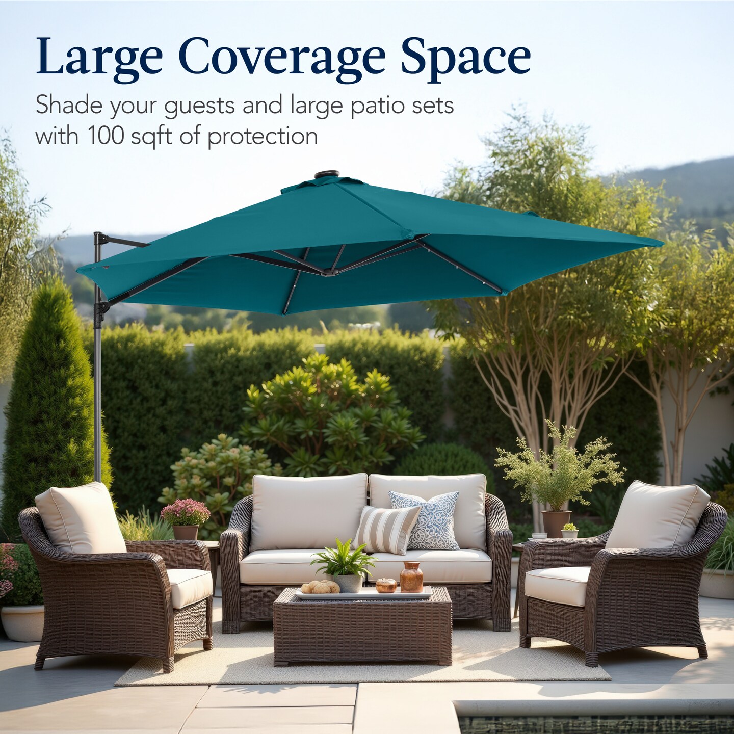 Best Choice Products 10ft 360° Rotating Cantilever Easy Auto Open Patio Umbrella w/ Solar LED Lights