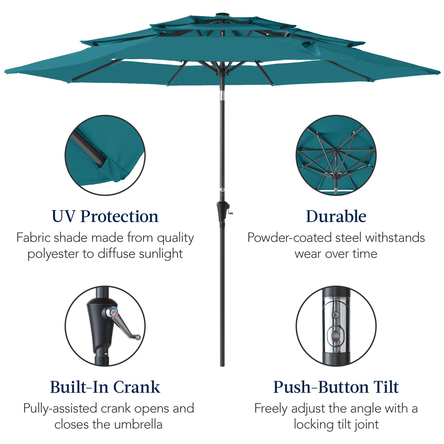 Best Choice Products 10ft 3-Tier Patio Umbrella, Market Sun Shade w/ Tilt Adjustment, Easy Crank