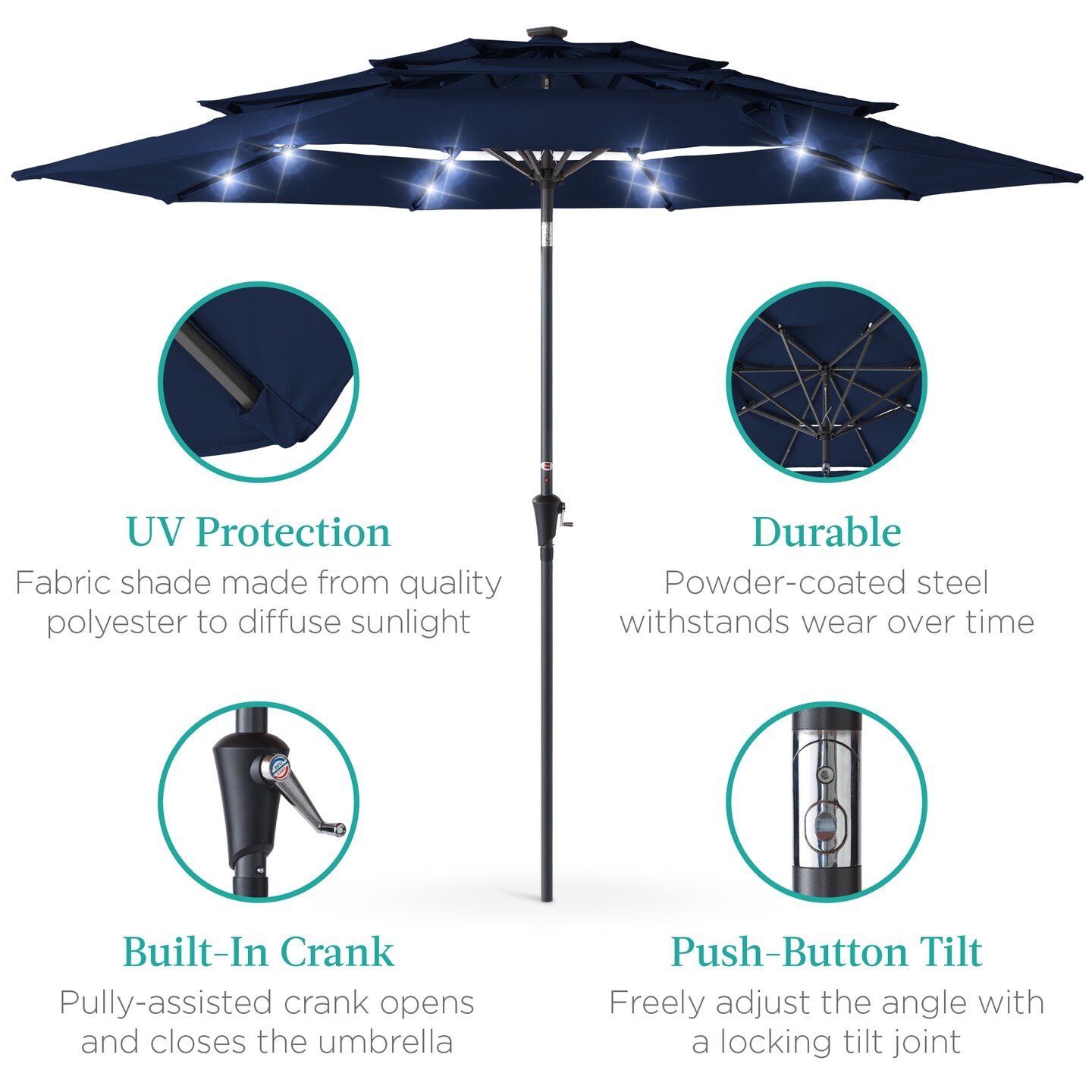 Best Choice Products 10ft 3-Tier Solar Patio Umbrella w/ 24 LED Lights, Tilt Adjustment, Easy Crank
