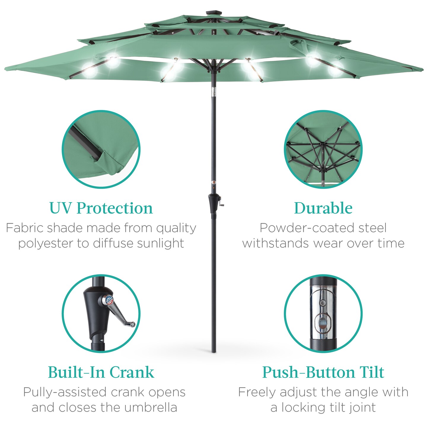Best Choice Products 10ft 3-Tier Solar Patio Umbrella w/ 24 LED Lights, Tilt Adjustment, Easy Crank