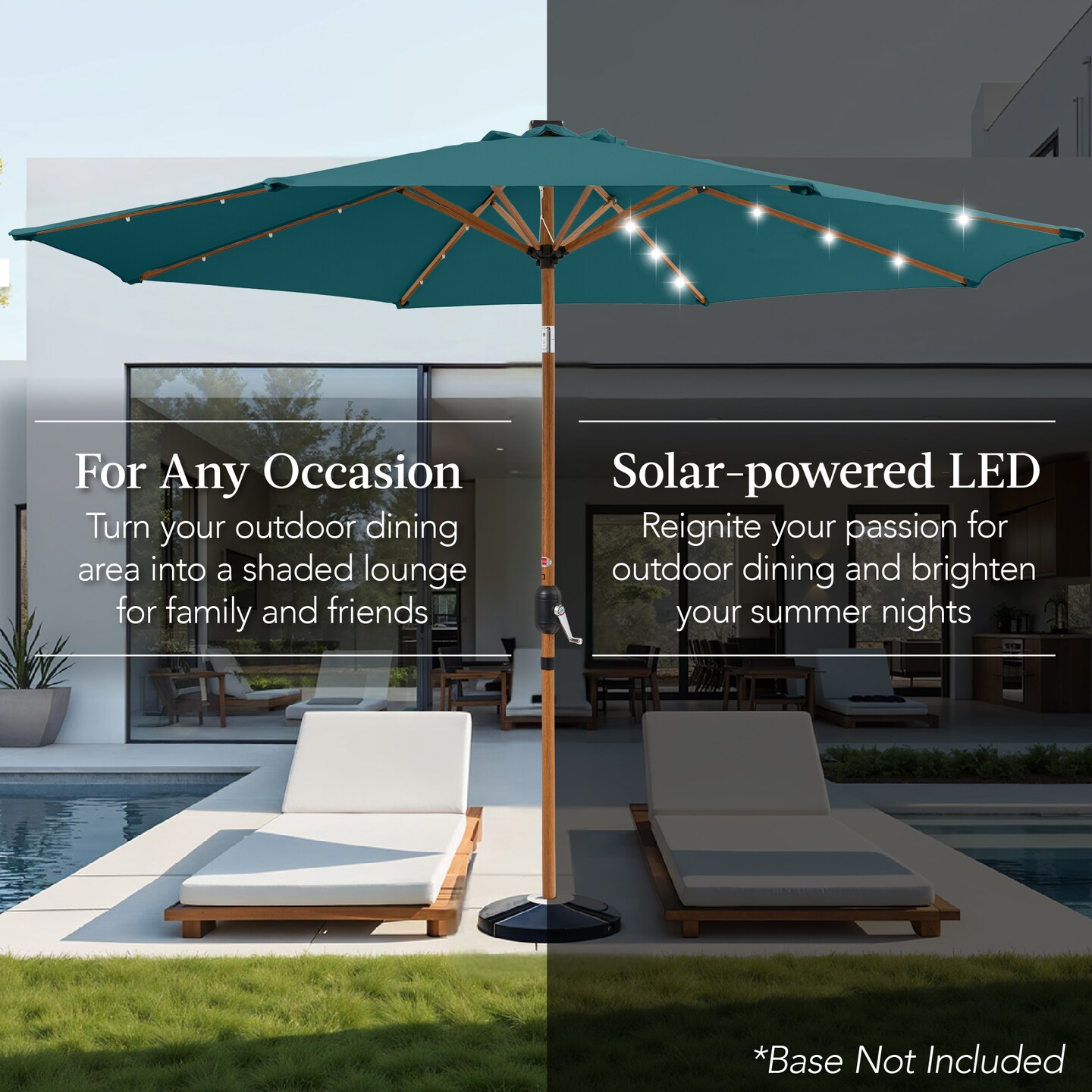 Best Choice Products 10ft Solar LED Lighted Outdoor Woodgrain Pattern Steel Market Patio Umbrella