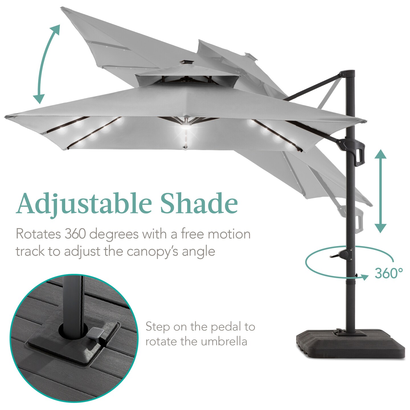 Best Choice Products 10x10ft 2-Tier Square Outdoor Solar LED Cantilever Patio Umbrella w/ Base Included