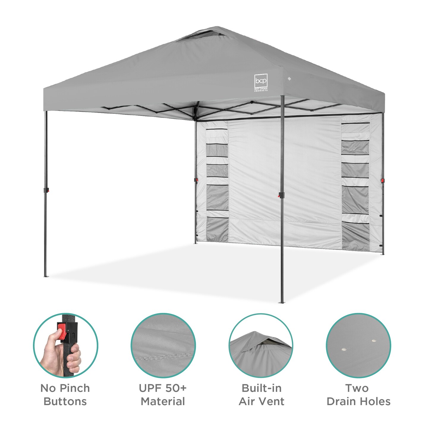 Best Choice Products 10x10ft Easy Setup Pop Up Canopy, Portable Tent w/ Side Wall, 1-Button Push, Case