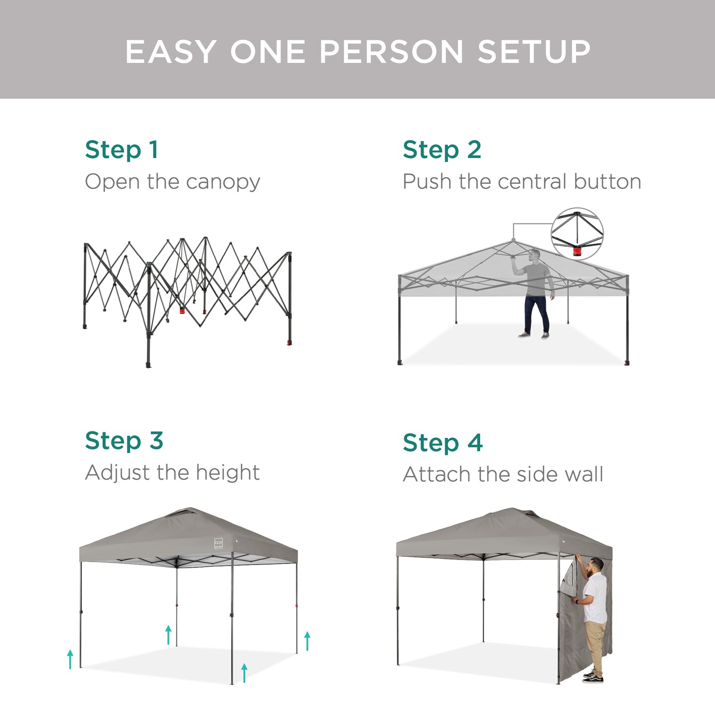 Best Choice Products 10x10ft Easy Setup Pop Up Canopy, Portable Tent w/ Side Wall, 1-Button Push, Case