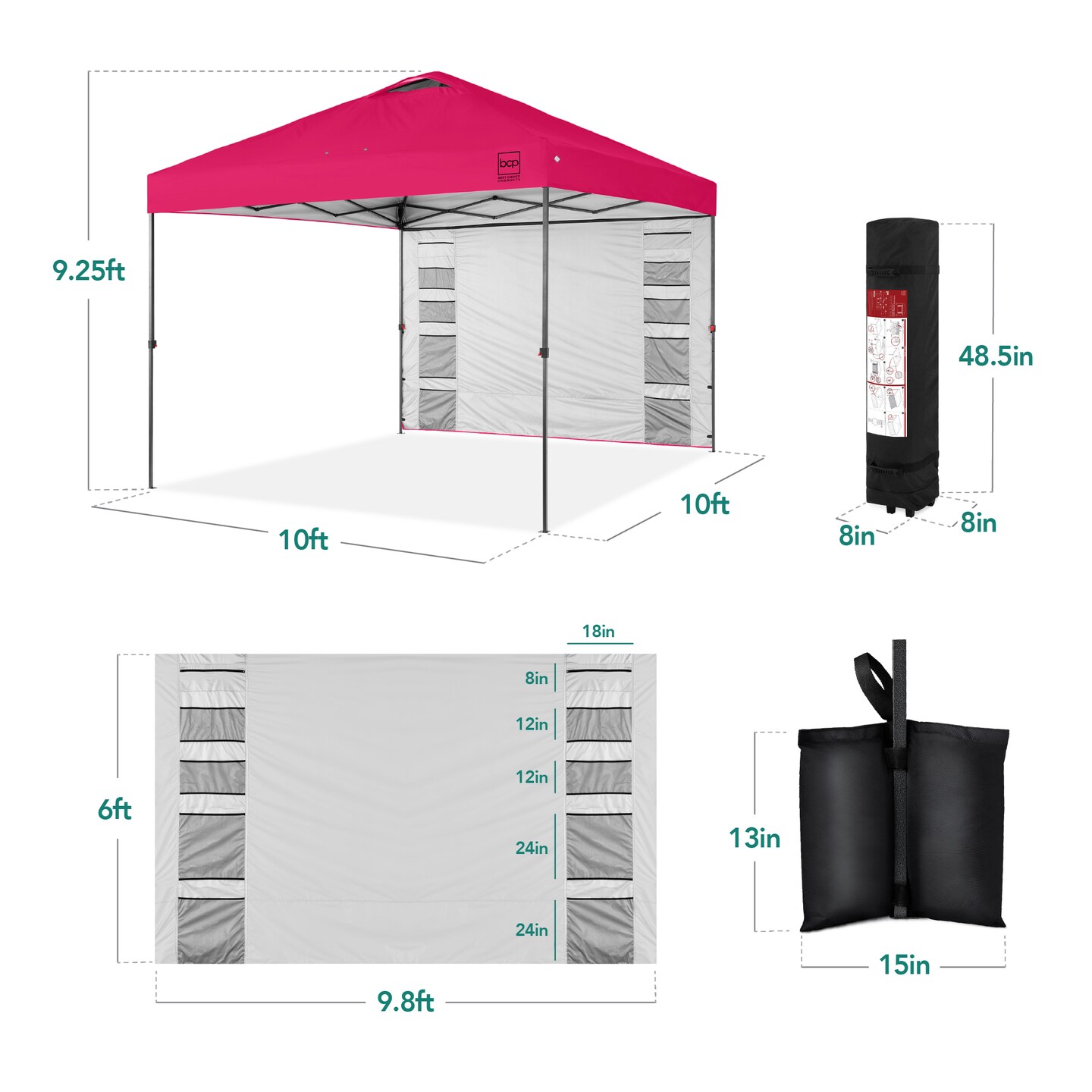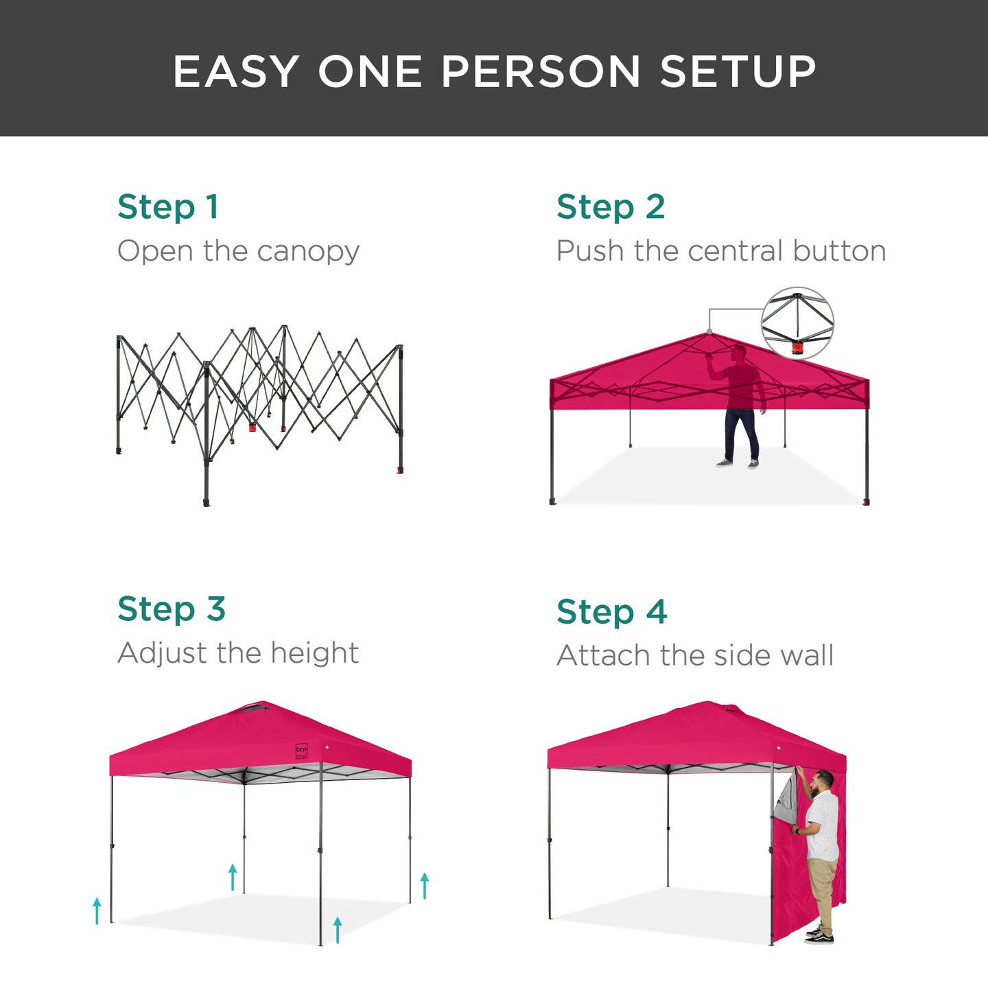 Best Choice Products 10x10ft Easy Setup Pop Up Canopy, Portable Tent w/ Side Wall, 1-Button Push, Case