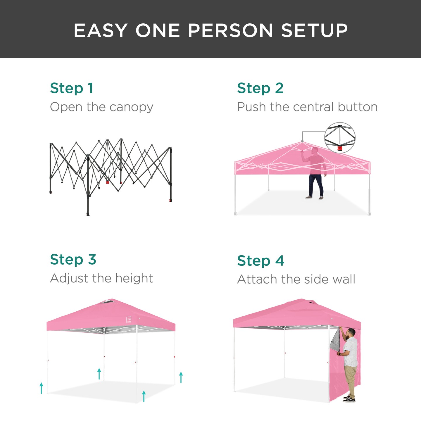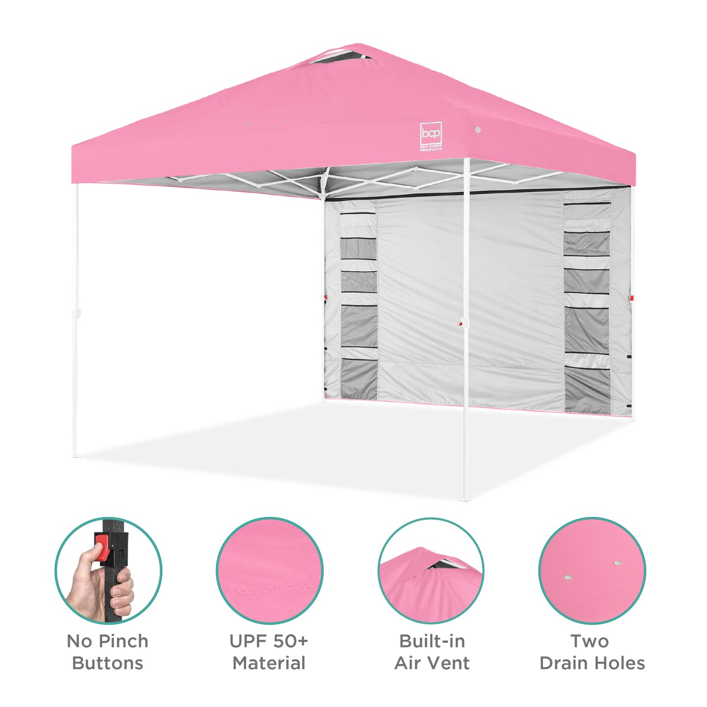 Best Choice Products 10x10ft Easy Setup Pop Up Canopy, Portable Tent w/ Side Wall, 1-Button Push, Case