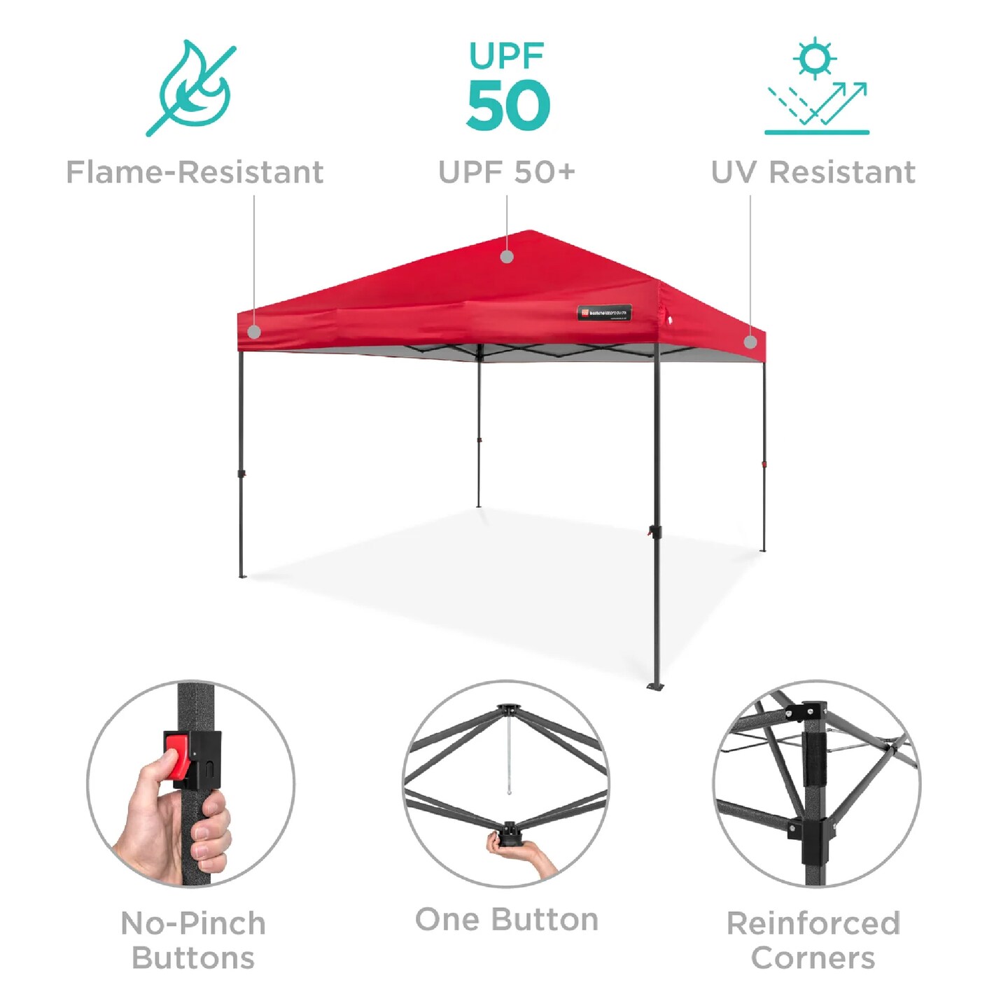Best Choice Products 10x10ft Easy Setup Pop Up Canopy w/ 1-Button Setup, Wheeled Case, 4 Weight Bags