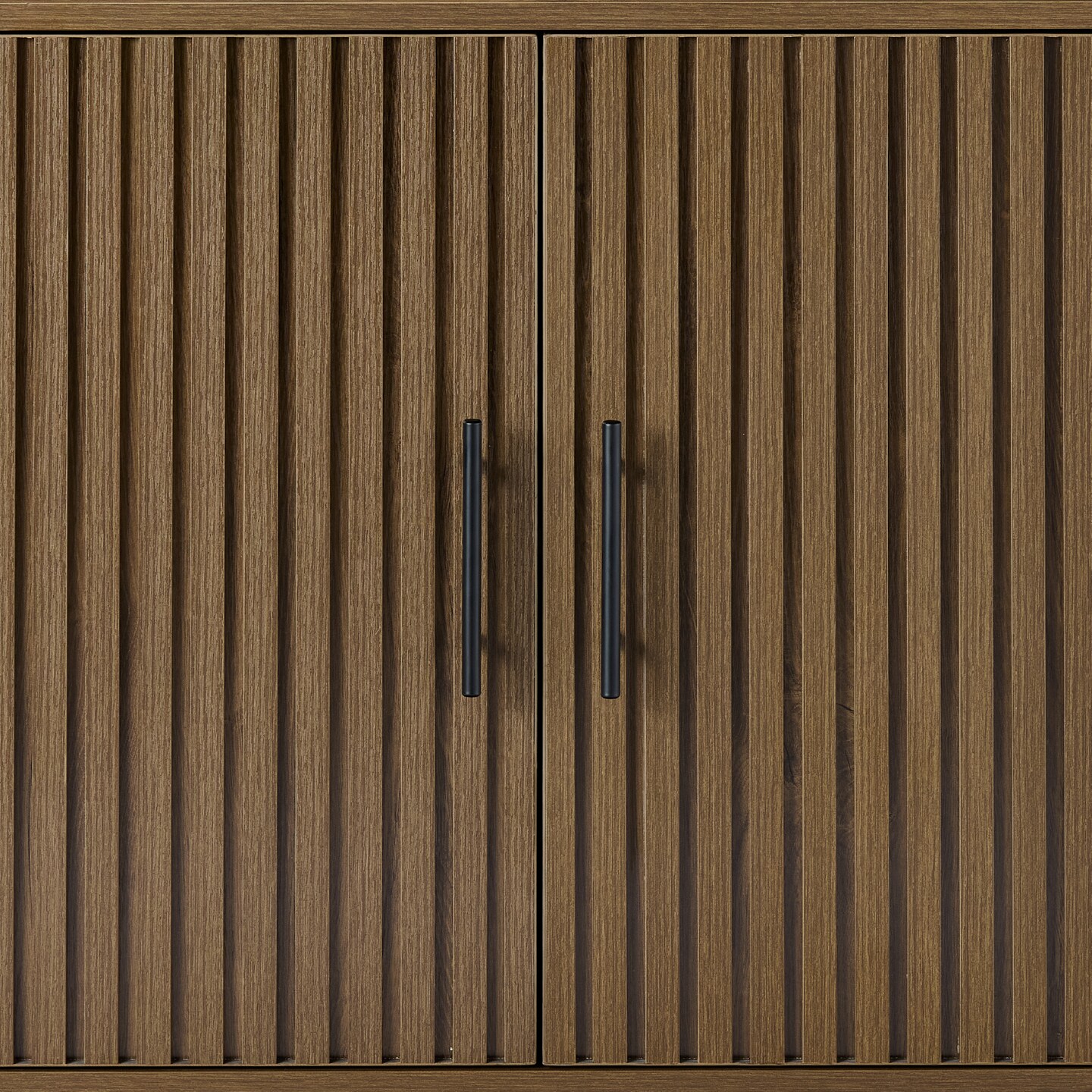 Best Choice Products 2-Door Slatted Storage Cabinet, Accent Furniture w/ Non-Scratch Foot Pads