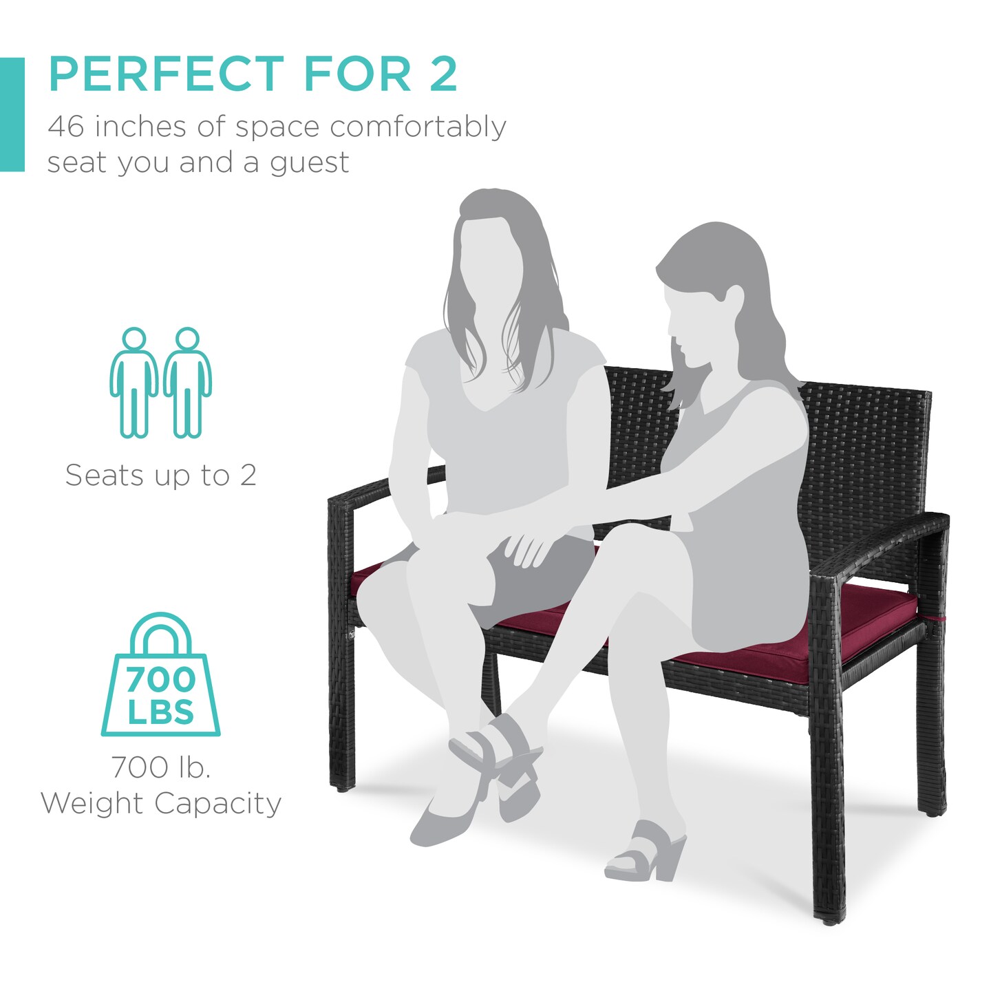 Best Choice Products 2-Person Outdoor Wicker Bench Garden Patio Porch Furniture w/ 700lb Capacity, Cushion