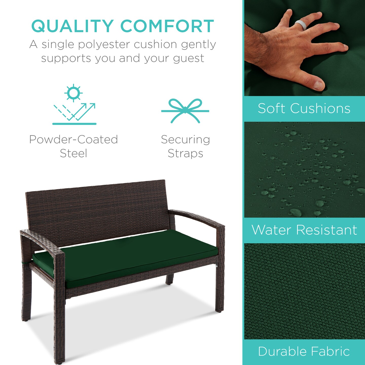 Best Choice Products 2-Person Outdoor Wicker Bench Garden Patio Porch Furniture w/ 700lb Capacity, Cushion