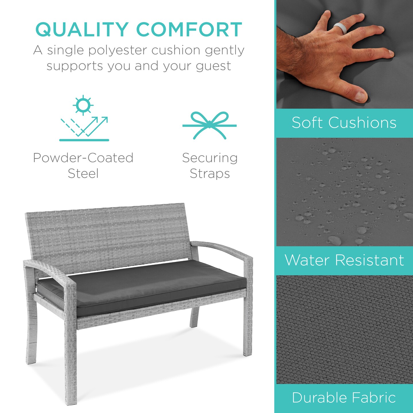 Best Choice Products 2-Person Outdoor Wicker Bench Garden Patio Porch Furniture w/ 700lb Capacity, Cushion