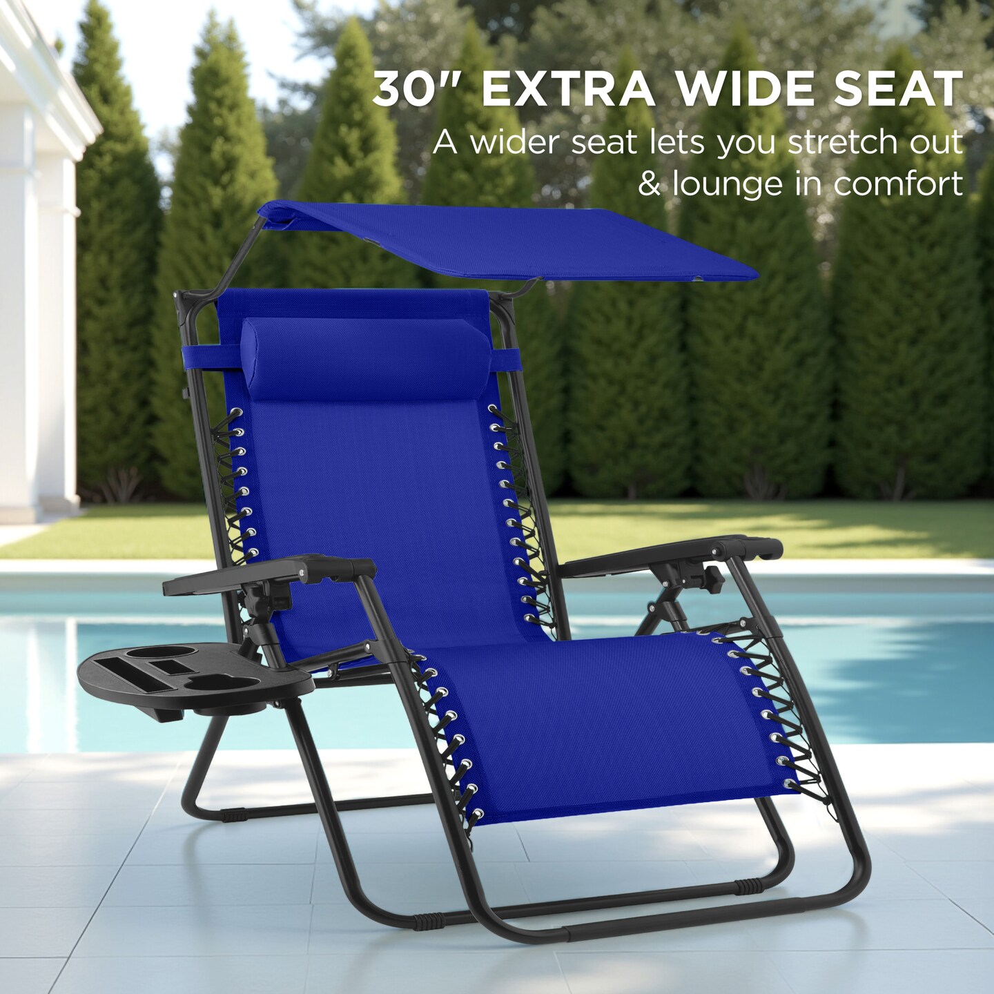Best Choice Products 30” Extra Wide Folding Zero Gravity Patio Lounge Chair w/Adjustable Canopy Shade