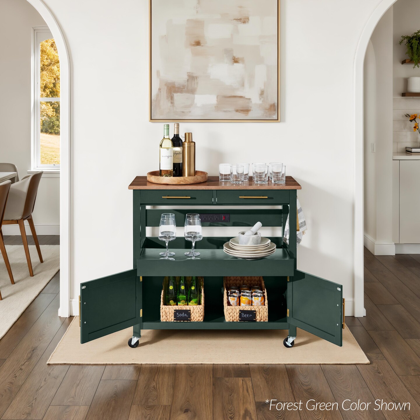 Best Choice Products 36in Large Rolling Kitchen Island Cart, 2-Door Cabinet, Outlet, Hooks, & Wheels
