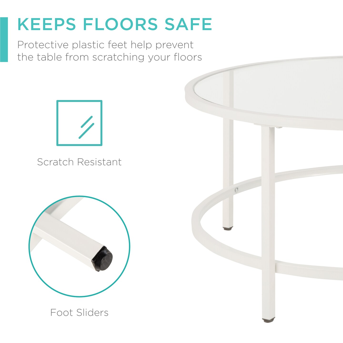 Best Choice Products 36in Round Tempered Glass Coffee Table for Home, Living Room, Dining Room