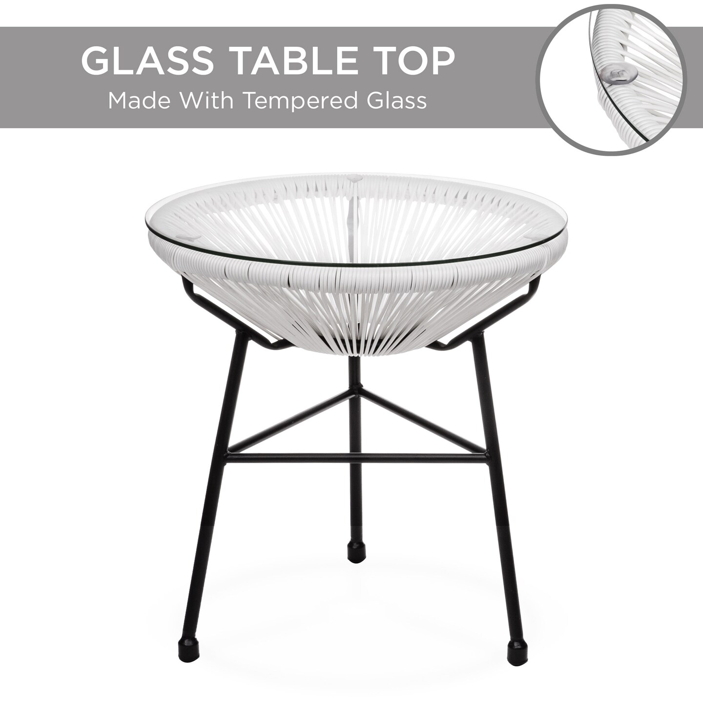 Best Choice Products 3-Piece All-Weather Patio Acapulco Bistro Furniture Set w/ Rope, Glass Top Table