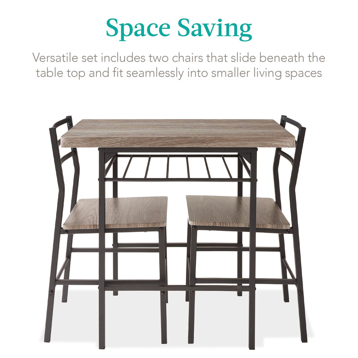 Best Choice Products 3-Piece Modern Dining Set, Square Table & Chairs Set w/ Steel Frame, Built-In Storage Rack