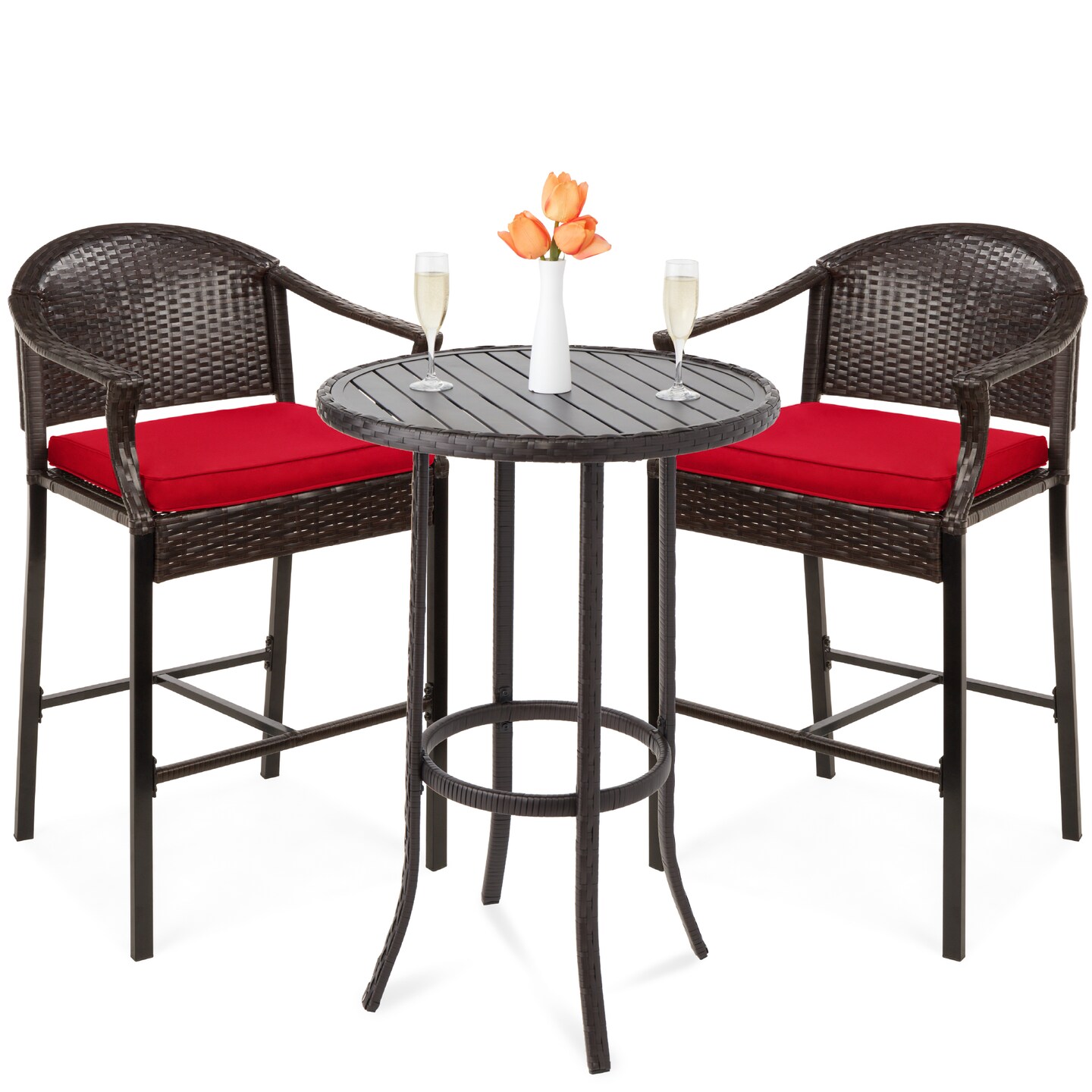 Best Choice Products 3-Piece Outdoor Wicker Bistro Bar Height Set for Patio, Garden w/ Barstools, Steel Frame