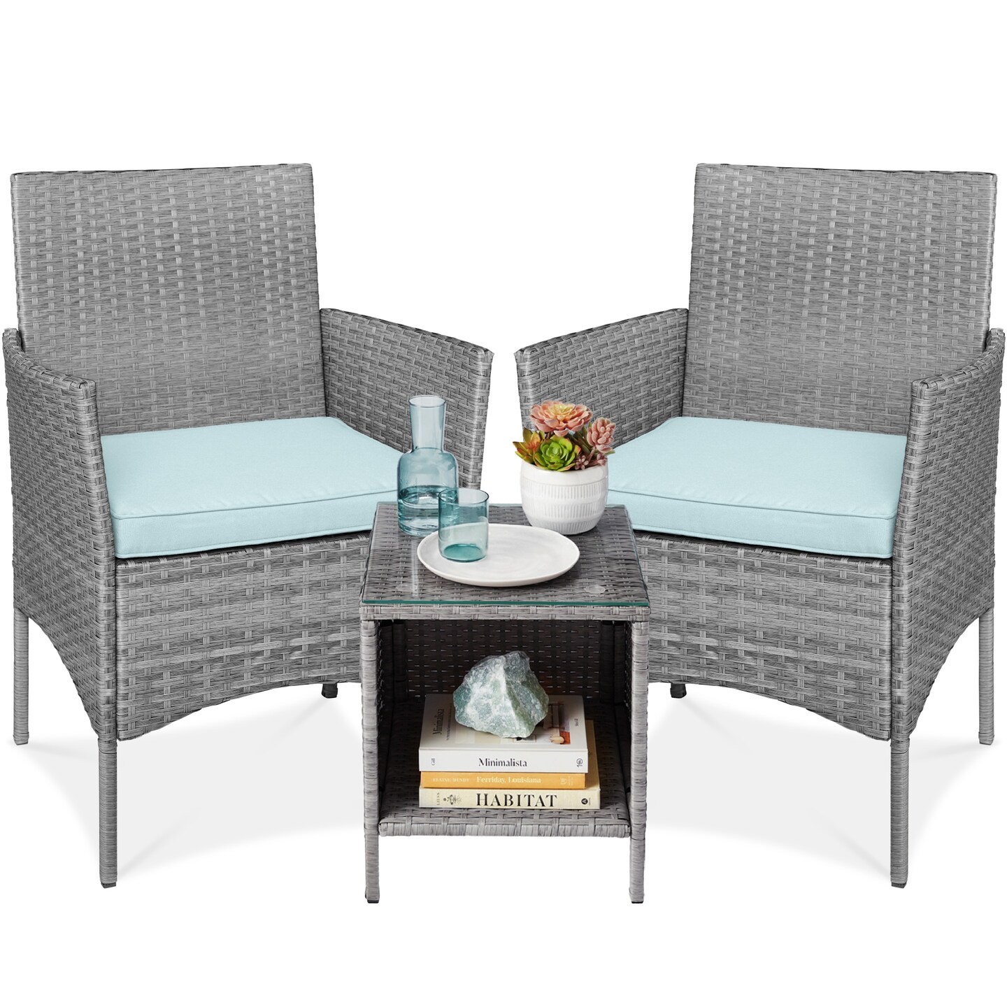 Best Choice Products 3-Piece Outdoor Wicker Conversation Patio Bistro Set, w/ 2 Chairs, Table