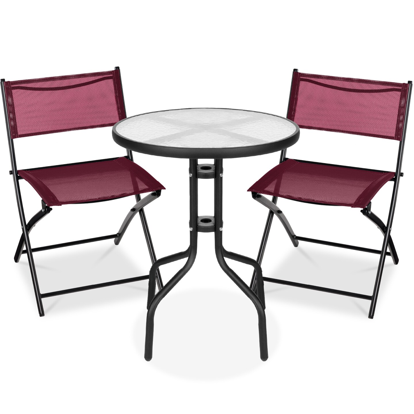Best Choice Products 3-Piece Patio Bistro Dining Furniture Set w/ Round Textured Glass Tabletop, Folding Chairs