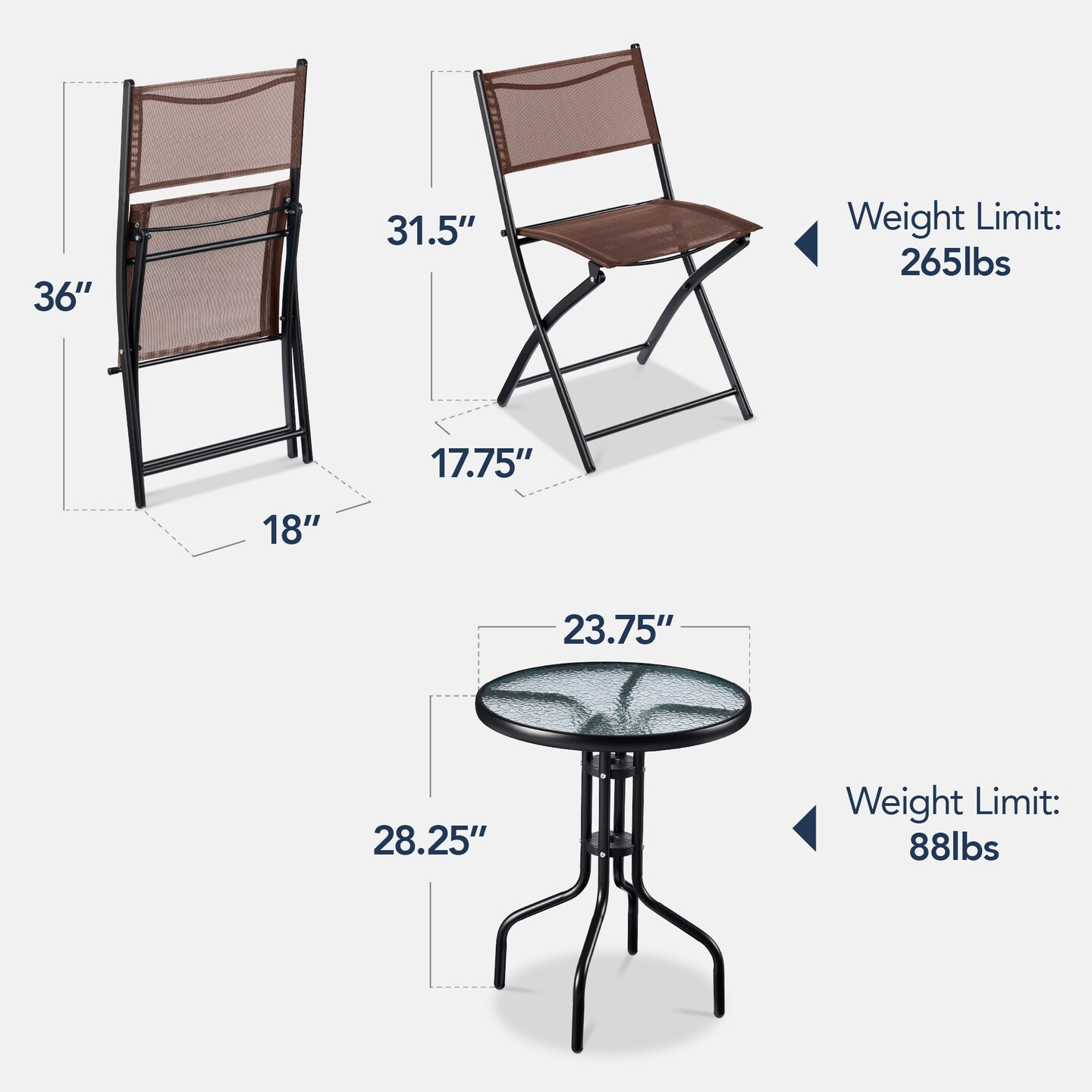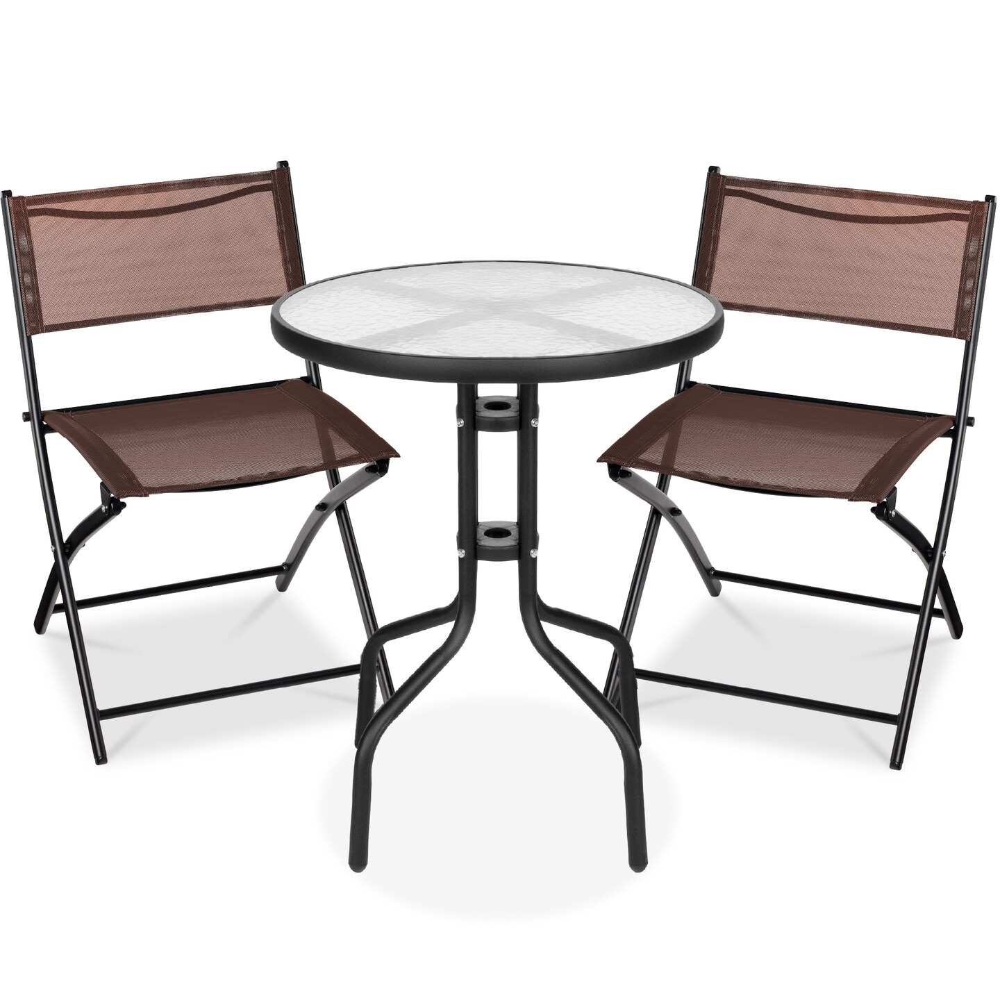 Best Choice Products 3-Piece Patio Bistro Dining Furniture Set w/ Round Textured Glass Tabletop, Folding Chairs